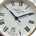Элегантный стиль, широкий браслет, минималистичный циферблат, синие контрастные стрелки – модель выглядит ярко и в то же время строго. Это позволяет носить часы при любых обстоятельствах, Будь то повседневная прогулка или бизнес-встреча. Часы оснащены швейцарским автоматическим механизмом ETA Powermatic 80Powermatic 80Эксклюзивный калибр от швейцарской компании ETA с увеличенным запасом хода до 80 часов за счёт удлинённой заводной пружины. Характеризуется улучшенной системой спуска со сниженным трением. с увеличенным запасом хода до 80 часов. Циферблат дополнен сапфировым стеклом, антибликовое покрытие которого обеспечивает идеальную читаемость данных даже при ярком свете. Наручные часы отличаются ударопрочностью и водонепроницаемостью 100 метров благодаря фирменной концепции DS ConceptDS ConceptDouble Security Concept, обозначает двойную надёжность и безупречную точность часов Certina. Двойная система защиты подразумевает обеспечение максимальной устойчивости к ударам и высоких показателей водонепроницаемости.. Корпус и браслет сделаны из стали 316L с PVD-покрытиемPVDУльтратонкое покрытие наносится в технике вакуумного напыления, сочетает в себе нитрид титана особой прочности со слоем золота или оксида хрома. Несёт в себе декоративную или защитную функцию., материал долговечен и устойчив к коррозии. На метке 6 часов размещено окошко даты. Диаметр корпуса: 39 мм.