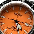 Оригинальный чёрный циферблат понравится ценителям ретро-дизайна. В комплекте с тканевым ремешком вы получаете дополнительный вариант из стали. Меняя их, вы можете экспериментировать с разными стилями. Уникальностью обладает не только аксессуар, но и упаковка, сделанная в виде бокса для дайвинга. Часы комплектуются автоматическим механизмом ETA Powermatic 80Powermatic 80Эксклюзивный калибр от швейцарской компании ETA с увеличенным запасом хода до 80 часов за счёт удлинённой заводной пружины. Характеризуется улучшенной системой спуска со сниженным трением. с 80-часовым запасом хода. Технология DS ConceptDS ConceptDouble Security Concept, обозначает двойную надёжность и безупречную точность часов Certina. Двойная система защиты подразумевает обеспечение максимальной устойчивости к ударам и высоких показателей водонепроницаемости.. Стекло с покрытием Nex scratchguard, устойчивым к царапинам. Вращающийся безельБезельВнешний ободок, закрепляющий стекло. В спортивных часах так называется поворотное кольцо с делениями на циферблате, выполняет роль таймера – замеряет отрезки времени на шкале. Неподвижный безель – элемент декора. Однонаправленно вращающийся безель на дайверских часах позволяет фиксировать моменты погружения и выныривания на поверхность.. Диаметр корпуса: 42,8 мм.