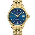 Аксессуар обладает изящным силуэтом, отражающим классический стиль и элегантность. Циферблат украшен 3 роскошными бриллиантами оттенка Top Wesselton. Часы комплектуются высокоточным кварцевым калибром F06.412 от швейцарской компании ETA, высокая точность механизма подтверждается сертификатом хронометра COSCСертификат COSCОфициальный сертификат, подтверждающий то, что часы ходят с особо высокой точностью. Для получения документа часы подвергаются тестовым испытаниям, разработанным швейцарским институтом тестирования хронометров COSC. Допустимая норма для механических часов -4/+6 секунд в день, для кварцевых моделей +/- 0,07 секунд в день.. Концепция DS ConceptDS ConceptDouble Security Concept, обозначает двойную надёжность и безупречную точность часов Certina. Двойная система защиты подразумевает обеспечение максимальной устойчивости к ударам и высоких показателей водонепроницаемости. гарантирует повышенную ударопрочность часов и сохранение водонепроницаемости до 20 бар. Одностороннее антибликовое покрытие сапфирового стеклаСапфировое стеклоПрочный и надёжный материал из кристалла сапфира синтетического происхождения, характеризующийся особой твёрдостью и устойчивостью к царапинам и повреждениям.. Корпус часов изготовлен из нержавеющей стали 316L с PVD-покрытиемPVDУльтратонкое покрытие наносится в технике вакуумного напыления, сочетает в себе нитрид титана особой прочности со слоем золота или оксида хрома. Несёт в себе декоративную или защитную функцию.. Стальной браслет с PVD-покрытиемPVDУльтратонкое покрытие наносится в технике вакуумного напыления, сочетает в себе нитрид титана особой прочности со слоем золота или оксида хрома. Несёт в себе декоративную или защитную функцию. на застёжке-бабочке с кнопкамиЗастёжка "бабочка"Такой вид застёжки дополняется предохранителями, помогающими избежать случайного раскрытия браслета. Обладают изящным исполнением. . Окошко даты, функция EOLEOLПредставляет собой систему, уведомляющую владельца часов о необходимости замены элемента питания. За 2 недели до полного разряда батарейки секундная стрелка перестаёт ходить чётко и начинает перепрыгивать на 3-4 деления.. Диаметр корпуса: 33,8 мм.