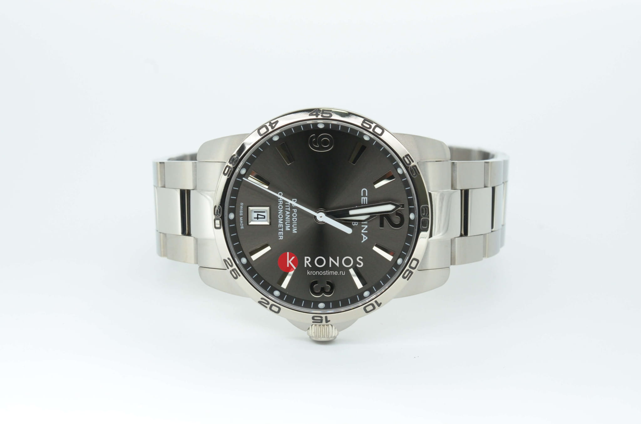 Наручные часы в спортивном стиле дополнены классическими элементами, имеют спокойную расцветку. Антрацитовый циферблат представлен в минималистичном оформлении, арабские цифры, индексы имеют контрастный оттенок. Модель оснащена швейцарским кварцевым механизмом ETA F07.412 Precidrive™Precidrive™Инновационный кварцевый механизм Certina. Часы, оснащённые этим швейцарским калибром, приравниваются к точности к сертифицированным хронометрам, точность хода составляет +/-10 секунд в год.. Безупречная точность калибра отмечена официальным сертификатом хронометра COSCСертификат COSCОфициальный сертификат, подтверждающий то, что часы ходят с особо высокой точностью. Для получения документа часы подвергаются тестовым испытаниям, разработанным швейцарским институтом тестирования хронометров COSC. Допустимая норма для механических часов -4/+6 секунд в день, для кварцевых моделей +/- 0,07 секунд в день.. Аксессуар удобен в эксплуатации, сохраняет ударопрочность и водонепроницаемость 100 метров благодаря концепции Double SecurityDS ConceptDouble Security Concept, обозначает двойную надёжность и безупречную точность часов Certina. Двойная система защиты подразумевает обеспечение максимальной устойчивости к ударам и высоких показателей водонепроницаемости.. Корпус и браслет выполнены из гипоаллергенного титана. Заводная головка с системой блокировки. Яркая люминесцентная подсветкаЛюминесцентное покрытиеПозволяет считывать показания времени в темноте. Производители наносят на стрелки, часовые индексы, безель или поверхность циферблата светонакопительный состав, дающий холодное свечение.. Индикатор EOLEOLПредставляет собой систему, уведомляющую владельца часов о необходимости замены элемента питания. За 2 недели до полного разряда батарейки секундная стрелка перестаёт ходить чётко и начинает перепрыгивать на 3-4 деления., апертура даты. Диаметр корпуса: 40 мм.