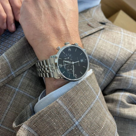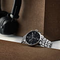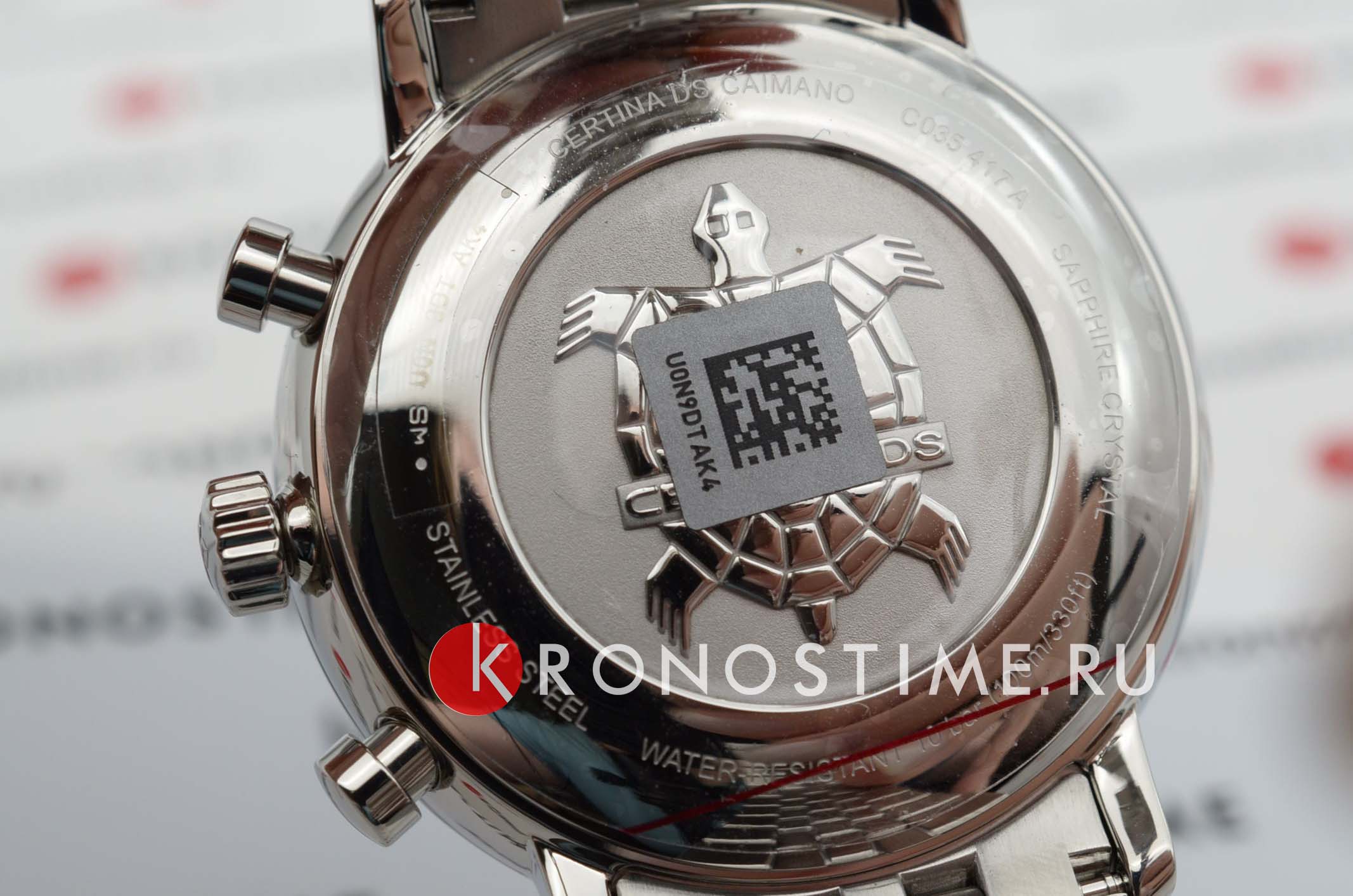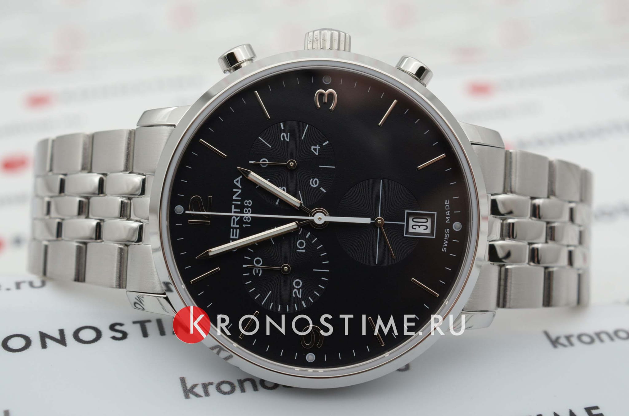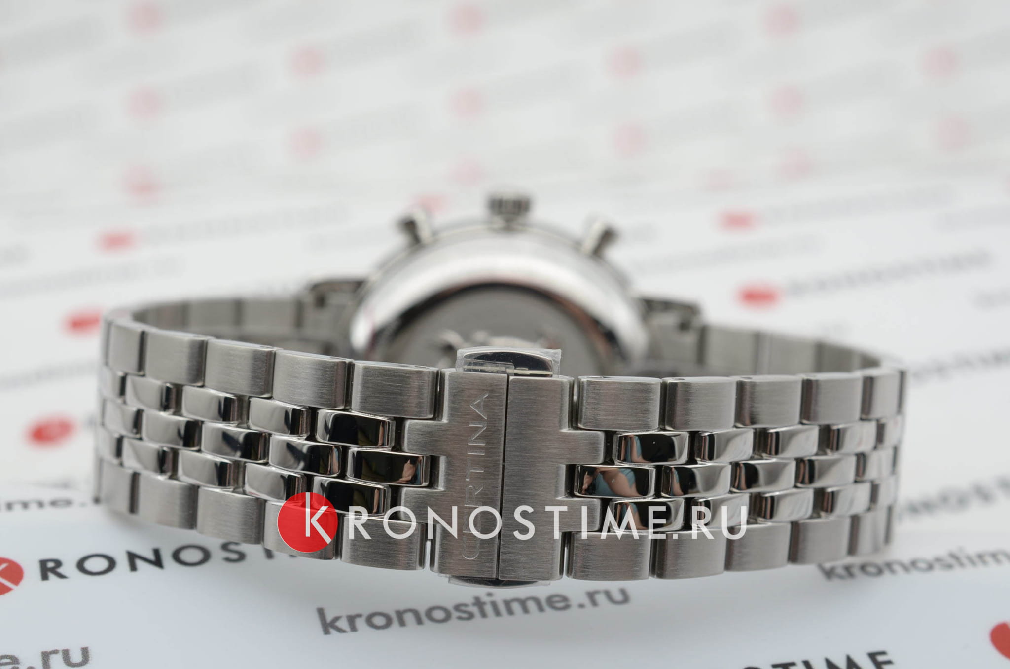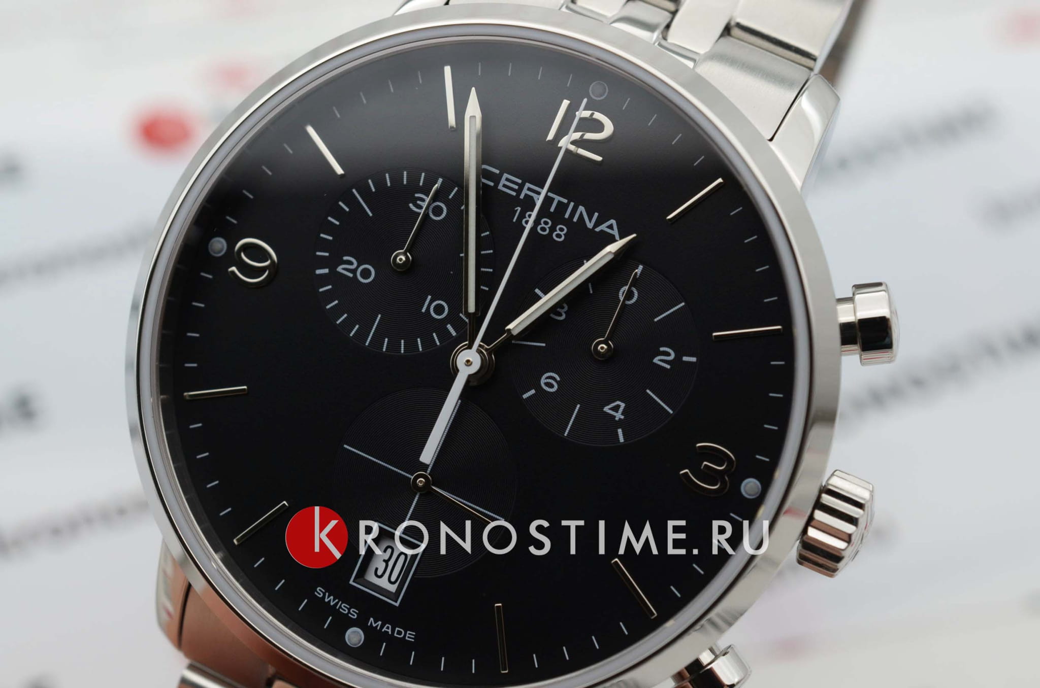 Брендовая модель поможет дополнить образ современного городского жителя. Классический стальной браслет с системой быстрой смены позволяет экспериментировать с образами. ХронографХронографФункция позволяет измерять отрезки времени с особой точностью: часы, минуты, секунды. Верным признаком хронографа является наличие на циферблате 3 дополнительных окошек-счётчиков. наделён чёрным циферблатом, оттенок приятно гармонирует с серебристым блеском ударопрочного корпусаУдаропрочный корпусМеханизм заключён в корпус, выполненный из современных материалов, устойчивых к ударам, механическим повреждениям и падению с высоты: инновационный пластик, карбон, нержавеющая сталь, титан.. Швейцарский кварцевый механизм ETA G10.212. Концепция Двойной надёжности DS ConceptDS ConceptDouble Security Concept, обозначает двойную надёжность и безупречную точность часов Certina. Двойная система защиты подразумевает обеспечение максимальной устойчивости к ударам и высоких показателей водонепроницаемости.. Сапфировое стекло с обработкой «антиблик». Водостойкость при давлении до 10 бар. Нержавеющая сталь 316L устойчива к царапинам и механическим воздействиям. Стрелки с люминесцентным покрытиемЛюминесцентное покрытиеПозволяет считывать показания времени в темноте. Производители наносят на стрелки, часовые индексы, безель или поверхность циферблата светонакопительный состав, дающий холодное свечение.. Секундомер, отображение текущей даты. Диаметр корпуса: 42 мм.