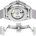 Женские механические часы с автоподзаводом Certina из коллекции DS PH200M — это сочетание надежности, элегантности и дайверского стиля. Корпус диаметром 39 мм и толщиной 11,9 мм выполнен из нержавеющей стали 316L с элементами керамики. Циферблат коричневого цвета оформлен индексами в виде меток и украшен 11 бриллиантами, придающими изделию роскошный вид. Окошко даты расположено в положении 3 часов. Циферблат защищён сапфировым стекломСапфировое стеклоПрочный и надёжный материал из кристалла сапфира синтетического происхождения, характеризующийся особой твёрдостью и устойчивостью к царапинам и повреждениям. с антибликовым покрытиемАнтибликовое покрытиеСлой оксида металла в 0,13-0,3 микрон, благодаря которому стекло часов не бликует и не отражает свет. Антибликовое покрытие уменьшает отражение света в 10 раз, обеспечивая отличную читаемость показателей циферблата., устойчивым к царапинам. Механизм — автоматический калибр Powermatic 80 с антимагнитной пружиной Nivachron™Nivachron™Специально разработанный инновационный сплав Nivachron™ повышает устойчивость часов к воздействию магнитных полей. и запасом хода 80 часов. Прозрачная задняя крышка открывает вид на механизм. Часы оснащены стальным браслетом миланского плетения на застёжке «бабочка» с кнопкамиЗастёжка "бабочка"Такой вид застёжки дополняется предохранителями, помогающими избежать случайного раскрытия браслета. Обладают изящным исполнением. . Завинчивающаяся коронка обеспечивает дополнительную защиту. Водонепроницаемость 200 м позволяет использовать часы для плавания и дайвинга. Гарантия — 24 месяца. Идеальный выбор для тех, кто ценит швейцарское качество, стиль и функциональность.