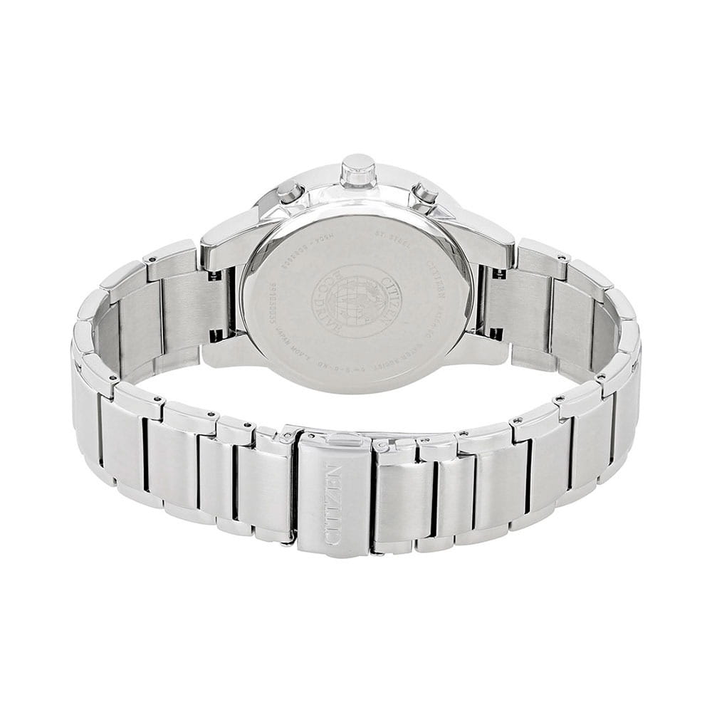 Японские наручные часы Citizen AT2240-51E сочетают в себе современный стиль и расширенные функциональные возможности. Модель выполнена в прочном корпусе из нержавеющей стали диаметром 43 мм и дополнена стальным браслетом с удобной раскладной застёжкойРаскладная застёжкаТакой тип застёжки используется только на браслетах из металла. Она никогда не раскрывается полностью, происходит разделение на 2 и более частей. Раскладывающая застёжка снизит вероятность потери часов к минимуму.. Черный циферблат оформлен лаконичными метками в виде штрихов, а окошко даты расположено в положении 4 часа для удобного считывания информации. Часы оснащены высокоточным кварцевым механизмом Citizen H504 с функцией хронографаХронографФункция позволяет измерять отрезки времени с особой точностью: часы, минуты, секунды. Верным признаком хронографа является наличие на циферблате 3 дополнительных окошек-счётчиков., позволяющей использовать секундомерСекундомерСекундоме́р — прибор, способный измерять интервалы времени с точностью до долей секунды. с точностью до 1 секунды и максимальным временем измерения до 1 часа. Предусмотрены 12- и 24-часовые форматы отображения времени. Благодаря инновационной системе Eco-Drive часы работают от солнечной энергии и не требуют замены батарейки, обеспечивая запас хода до 150 дней, а также оснащены функциями индикации заряда и предотвращения перезарядки. Минеральное стеклоМинеральное стеклоМинеральное стекло представляет собой искусственно выращенный минерал кварца. Такое стекло отличается особой устойчивостью к повреждениям и царапинам. Уступает по некоторым качествам сапфировому стеклу. надежно защищает циферблат от царапин, а водозащита 30WR позволяет не беспокоиться о случайных брызгах воды. Вес модели составляет 156 грамм, браслет шириной 23 мм и длиной 206,4 мм обеспечивает комфортное ношение. Эти часы станут отличным выбором для тех, кто ценит надежность, стиль и технологичность.