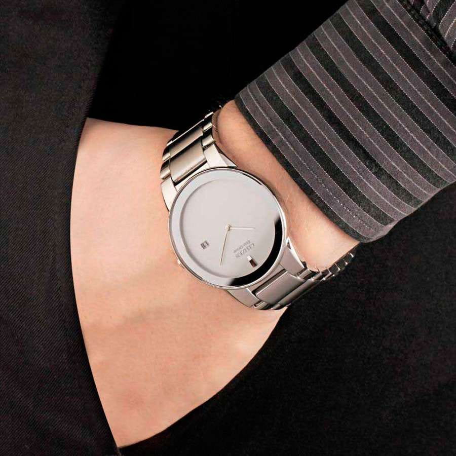 Часы Citizen AU1060-51A представлены в строгом и элегантном дизайне, идеально подходящем для делового стиля. Корпус и браслет выполнены из высококачественной нержавеющей стали, что обеспечивает долговечность и презентабельный внешний вид. Белый циферблат с минималистичным оформлением подчеркивает сдержанность модели, а окошко даты удобно расположено в положении 3 часа. Надежный кварцевый механизм Citizen J165 работает на инновационной системе Eco-Drive, которая питается от солнечной энергии и не требует замены батарейки, обеспечивая запас хода до 270 дней. Часы оснащены функцией индикации заряда EOLEOLПредставляет собой систему, уведомляющую владельца часов о необходимости замены элемента питания. За 2 недели до полного разряда батарейки секундная стрелка перестаёт ходить чётко и начинает перепрыгивать на 3-4 деления. и защитой от перезаряда. Минеральное стеклоМинеральное стеклоМинеральное стекло представляет собой искусственно выращенный минерал кварца. Такое стекло отличается особой устойчивостью к повреждениям и царапинам. Уступает по некоторым качествам сапфировому стеклу. надежно защищает циферблат от случайных повреждений, а водозащита уровня WR30 позволяет не снимать часы при случайном контакте с водой. Диаметр корпуса составляет 40 мм, что делает модель универсальным аксессуаром для любого случая. Раскладная застёжкаРаскладная застёжкаТакой тип застёжки используется только на браслетах из металла. Она никогда не раскрывается полностью, происходит разделение на 2 и более частей. Раскладывающая застёжка снизит вероятность потери часов к минимуму. на браслете обеспечивает дополнительный комфорт при носке.