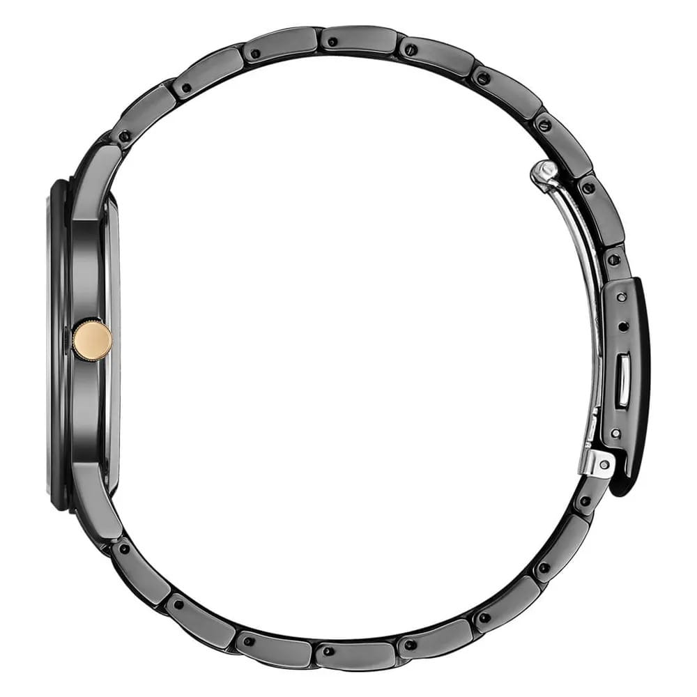 Citizen BM6976-72E — это стильные японские часы, которые сочетают в себе современный дизайн и передовые технологии. Корпус диаметром 40 мм выполнен из прочной нержавеющей стали с черным IP-покрытиемIP-покрытиеМетод ионного напыления. Демонстрирует повышенную устойчивость к истиранию, окислению и химическим веществам. Под воздействием высокого давления и температуры около 1500°C молекулы металла надёжно соединяются с частицами корпуса часов., что придает модели элегантный и благородный вид. Черный циферблат украшен розово-золотыми штрихами и римскими цифрами, а также окошком даты, расположенным на отметке 3 часа. Часы оснащены кварцевым механизмом с системой Eco-Drive, которая обеспечивает питание от солнечной энергии и избавляет от необходимости регулярно менять батарейку. Сапфировое стеклоСапфировое стеклоПрочный и надёжный материал из кристалла сапфира синтетического происхождения, характеризующийся особой твёрдостью и устойчивостью к царапинам и повреждениям. надежно защищает поверхность от царапин, а водозащита WR50 обеспечивает устойчивость к брызгам и дождю. Стальной браслет с раскладной застёжкойРаскладная застёжкаТакой тип застёжки используется только на браслетах из металла. Она никогда не раскрывается полностью, происходит разделение на 2 и более частей. Раскладывающая застёжка снизит вероятность потери часов к минимуму. с кнопкой удобно фиксируется на запястье. Данная модель отличается не только надежностью и точностью, но и лаконичным внешним видом, что делает ее отличным выбором для повседневного использования в деловом и современном стиле.