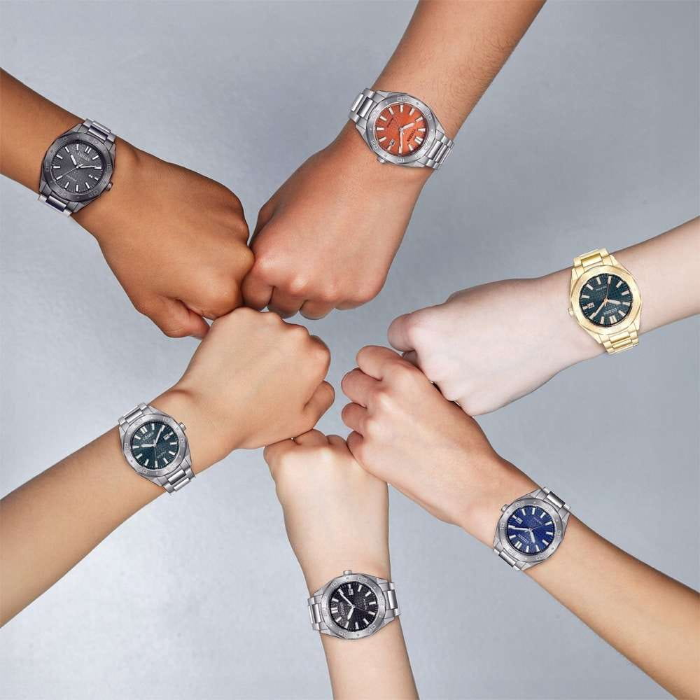 Часы Citizen BM7630-80X сочетают в себе современный стиль и высокую функциональность. Японский кварцевый механизм калибра Citizen E111 обеспечивает точную работу и надежность, а инновационная система Eco-Drive позволяет забыть о замене батареек — питание осуществляется за счет солнечной энергии, с запасом хода до 180 дней. Корпус и браслет выполнены из прочной нержавеющей стали, что гарантирует долговечность и устойчивость к износу. На безелеБезельВнешний ободок, закрепляющий стекло. В спортивных часах так называется поворотное кольцо с делениями на циферблате, выполняет роль таймера – замеряет отрезки времени на шкале. Неподвижный безель – элемент декора. Однонаправленно вращающийся безель на дайверских часах позволяет фиксировать моменты погружения и выныривания на поверхность. выгравирована секундная и минутная шкала. Элегантный темно-зеленый циферблат со стрелками и метками с люминесцентным покрытиемЛюминесцентное покрытиеПозволяет считывать показания времени в темноте. Производители наносят на стрелки, часовые индексы, безель или поверхность циферблата светонакопительный состав, дающий холодное свечение. защищен устойчивым к царапинам минеральным стекломМинеральное стеклоМинеральное стекло представляет собой искусственно выращенный минерал кварца. Такое стекло отличается особой устойчивостью к повреждениям и царапинам. Уступает по некоторым качествам сапфировому стеклу.. Водозащита до 100 метров позволяет использовать часы при плавании и в повседневных ситуациях. Окно даты расположено на отметке «3 часа», а браслет оснащен удобной раскладной застёжкойРаскладная застёжкаТакой тип застёжки используется только на браслетах из металла. Она никогда не раскрывается полностью, происходит разделение на 2 и более частей. Раскладывающая застёжка снизит вероятность потери часов к минимуму.. Диаметр корпуса составляет 41 мм, толщина — 9,7 мм, ширина браслета — 22 мм, вес — 136 г. Эти часы станут отличным выбором для тех, кто ценит надежность, практичность и стильный внешний вид.