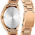 Часы Citizen BM7633-81X сочетают в себе современный стиль и высокую функциональность. Японский кварцевый механизм калибра Citizen E111 обеспечивает точную работу и надежность, а инновационная система Eco-Drive позволяет забыть о замене батареек — питание осуществляется за счет солнечной энергии, с запасом хода до 180 дней. Корпус и браслет выполнены из прочной нержавеющей стали с золотистым IP-покрытиемIP-покрытиеМетод ионного напыления. Демонстрирует повышенную устойчивость к истиранию, окислению и химическим веществам. Под воздействием высокого давления и температуры около 1500°C молекулы металла надёжно соединяются с частицами корпуса часов., что гарантирует долговечность и устойчивость к износу. На безелеБезельВнешний ободок, закрепляющий стекло. В спортивных часах так называется поворотное кольцо с делениями на циферблате, выполняет роль таймера – замеряет отрезки времени на шкале. Неподвижный безель – элемент декора. Однонаправленно вращающийся безель на дайверских часах позволяет фиксировать моменты погружения и выныривания на поверхность. выгравирована секундная и минутная шкала. Элегантный темно-зеленый циферблат со стрелками и метками с люминесцентным покрытиемЛюминесцентное покрытиеПозволяет считывать показания времени в темноте. Производители наносят на стрелки, часовые индексы, безель или поверхность циферблата светонакопительный состав, дающий холодное свечение. защищен устойчивым к царапинам минеральным стекломМинеральное стеклоМинеральное стекло представляет собой искусственно выращенный минерал кварца. Такое стекло отличается особой устойчивостью к повреждениям и царапинам. Уступает по некоторым качествам сапфировому стеклу. . Водозащита до 100 метров позволяет использовать часы при плавании и в повседневных ситуациях. Окно даты расположено на отметке «3 часа», а браслет оснащен удобной раскладной застёжкойРаскладная застёжкаТакой тип застёжки используется только на браслетах из металла. Она никогда не раскрывается полностью, происходит разделение на 2 и более частей. Раскладывающая застёжка снизит вероятность потери часов к минимуму.. Диаметр корпуса составляет 41 мм, толщина — 9,7 мм, ширина браслета — 22 мм, вес — 136 г. Эти часы станут отличным выбором для тех, кто ценит надежность, практичность и стильный внешний вид.