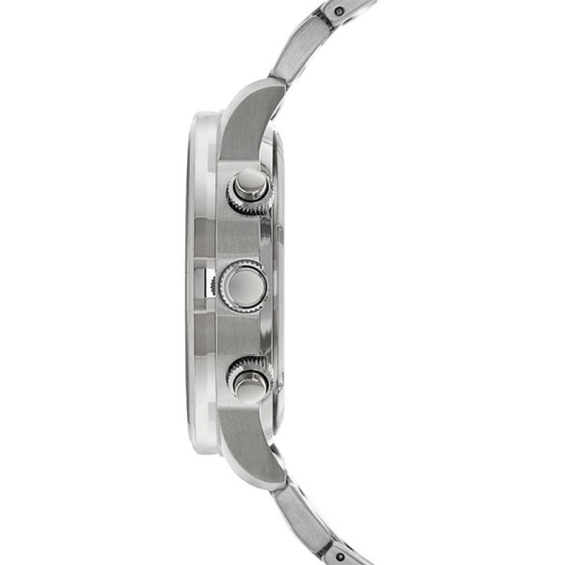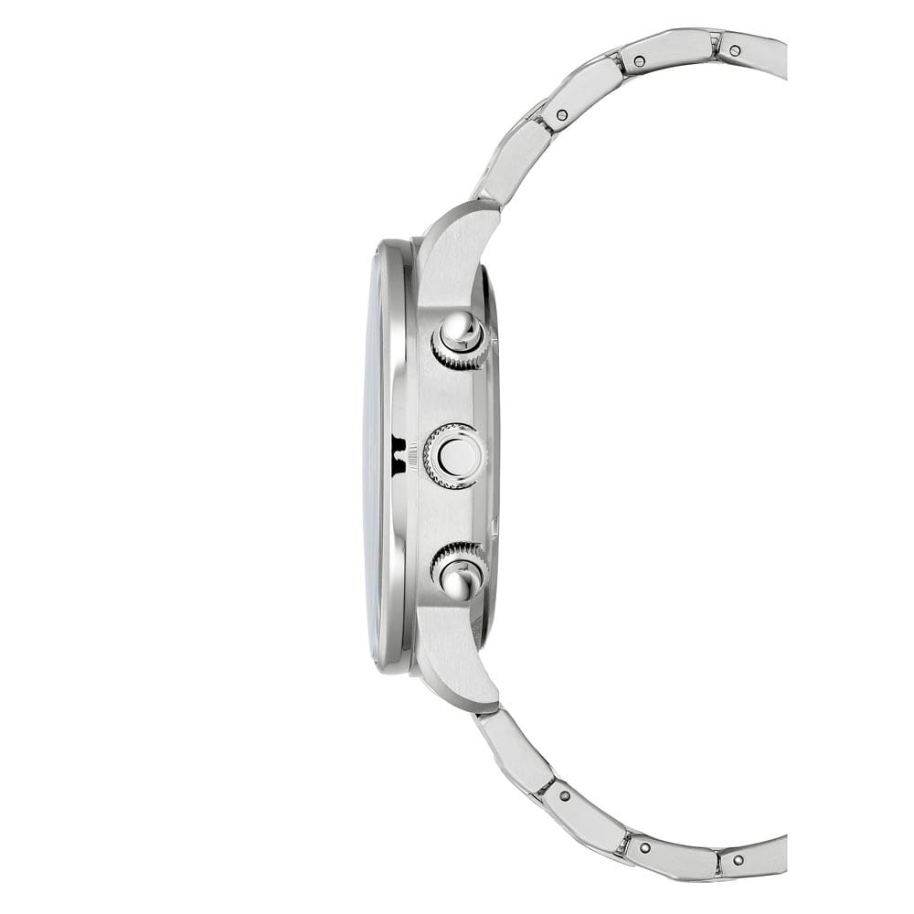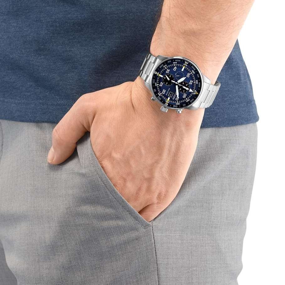 Citizen CA0690-88L — это стильные многофункциональные спортивные часы, сочетающие японское качество, современные технологии и надежность. Корпус и браслет выполнены из прочной нержавеющей стали, что обеспечивает долговечность и элегантный внешний вид, а синий циферблат с метками в виде штрихов и арабских цифр подчеркивает динамичный и современный характер модели. Часы оснащены кварцевым механизмом Citizen B612 с инновационной системой Eco-Drive, работающей на солнечной энергии, что позволяет забыть о регулярной замене батарейки и обеспечивает запас хода до 210 дней. Присутствует функция индикации заряда EOLEOLПредставляет собой систему, уведомляющую владельца часов о необходимости замены элемента питания. За 2 недели до полного разряда батарейки секундная стрелка перестаёт ходить чётко и начинает перепрыгивать на 3-4 деления. и система предотвращения перезарядки. Модель оснащена хронографомХронографФункция позволяет измерять отрезки времени с особой точностью: часы, минуты, секунды. Верным признаком хронографа является наличие на циферблате 3 дополнительных окошек-счётчиков. с секундомеромСекундомерСекундоме́р — прибор, способный измерять интервалы времени с точностью до долей секунды., измеряющим время с точностью до 1/5 секунды и максимальной продолжительностью замера до 1 часа, а также поддерживает отображение времени в 12- и 24-часовом формате. Стрелки с люминесцентным покрытиемЛюминесцентное покрытиеПозволяет считывать показания времени в темноте. Производители наносят на стрелки, часовые индексы, безель или поверхность циферблата светонакопительный состав, дающий холодное свечение. обеспечивают отличную читаемость времени даже в темное время суток. Прочное минеральное стеклоМинеральное стеклоМинеральное стекло представляет собой искусственно выращенный минерал кварца. Такое стекло отличается особой устойчивостью к повреждениям и царапинам. Уступает по некоторым качествам сапфировому стеклу. надежно защищает циферблат от царапин и повреждений, а водозащита 100WR позволяет не снимать часы во время плавания и активного отдыха. Удобное окошко даты расположено в положении 3 часа, а браслет снабжен раскладной застёжкойРаскладная застёжкаТакой тип застёжки используется только на браслетах из металла. Она никогда не раскрывается полностью, происходит разделение на 2 и более частей. Раскладывающая застёжка снизит вероятность потери часов к минимуму. для комфортного ношения. Диаметр корпуса составляет 44 мм, толщина 12,5 мм, а вес — 158 г, что делает эту модель отличным выбором для ценителей функциональности и современного стиля.