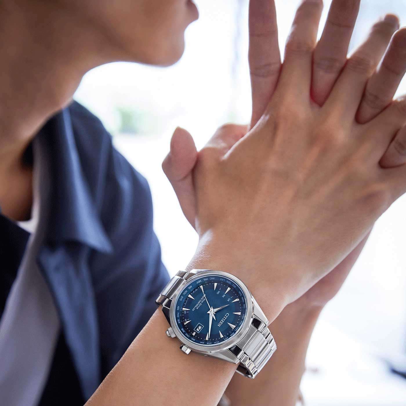 Citizen CB0270-87L — это высокоточные японские часы с современным кварцевым механизмом Citizen H145 и инновационной системой Eco-Drive, работающей от солнечной энергии и не требующей замены батарейки. Запас хода составляет до 180 дней без подзарядки, предусмотрены функции индикации уровня заряда, предотвращения перезарядки и энергосбережения. Корпус и браслет выполнены из прочной нержавеющей стали, диаметр корпуса — 43 мм, толщина — 10 мм, ширина браслета — 22 мм. Защита от воды до 100WR позволяет использовать часы во время плавания. Особая технология Sunray придаёт синему циферблату элегантный вид, а сапфировое стеклоСапфировое стеклоПрочный и надёжный материал из кристалла сапфира синтетического происхождения, характеризующийся особой твёрдостью и устойчивостью к царапинам и повреждениям. с вечным календарём с отображением числа, окошко даты расположено на отметке 3 часа. Часы автоматически принимают радиосигналы времени с вышек в Европе, США, Японии и Китае, обеспечивая максимально точное время и автоматический переход на летнее и зимнее время с возможностью отключения этой функции. Стрелки с люминесцентным покрытиемЛюминесцентное покрытиеПозволяет считывать показания времени в темноте. Производители наносят на стрелки, часовые индексы, безель или поверхность циферблата светонакопительный состав, дающий холодное свечение. обеспечивают отличную читаемость времени даже в темное время суток. Также поддерживается мировое времяМировое время Полезное часовое усложнение, отображающее время в основных городах и известных областях по всему миру, оно связано с часовыми поясами, удобно для путешественников и бизнесменов. для 26 городов. Браслет оборудован удобной раскладной застёжкойРаскладная застёжкаТакой тип застёжки используется только на браслетах из металла. Она никогда не раскрывается полностью, происходит разделение на 2 и более частей. Раскладывающая застёжка снизит вероятность потери часов к минимуму..