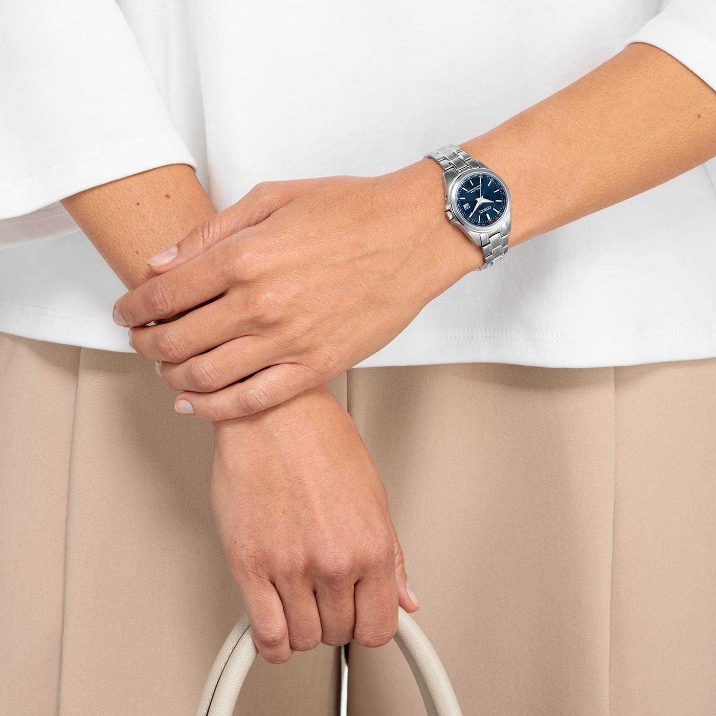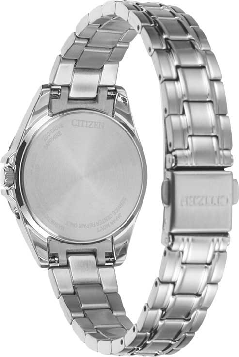Citizen EC1180-81L — стильные и функциональные часы для современных леди, созданные в Японии. Модель оснащена точным кварцевым механизмом с калибром Citizen H246 и инновационной системой Eco-Drive, которая обеспечивает питание от солнечной энергии и избавляет от необходимости замены батарейки, а запас хода составляет до 180 дней. Для дополнительного удобства предусмотрены функции индикации заряда EOLEOLПредставляет собой систему, уведомляющую владельца часов о необходимости замены элемента питания. За 2 недели до полного разряда батарейки секундная стрелка перестаёт ходить чётко и начинает перепрыгивать на 3-4 деления., сохранения энергии и предотвращения перезарядки, а при включенной функции сохранения энергии часы способны работать до трёх лет. Корпус и браслет выполнены из высококачественной нержавеющей стали, а синий циферблат с изысканным солнечным узором Sunray украшен метками в виде штрихов и защищён сапфировым стекломСапфировое стеклоПрочный и надёжный материал из кристалла сапфира синтетического происхождения, характеризующийся особой твёрдостью и устойчивостью к царапинам и повреждениям. с высокой устойчивостью к царапинам. Стрелки с люминесцентным покрытиемЛюминесцентное покрытиеПозволяет считывать показания времени в темноте. Производители наносят на стрелки, часовые индексы, безель или поверхность циферблата светонакопительный состав, дающий холодное свечение. обеспечивают отличную читаемость времени даже в темное время суток. Окошко даты удобно расположено на отметке 3 часа, а вечный календарьВечный календарьКлассическое часовое усложнение, представляющее собой календарь, рассчитанный на несколько лет вперёд (стандартно – до 2099 года). Определяет текущую дату, день недели, месяц. всегда показывает актуальное число. Часы автоматически принимают сигналы от радиовышек по всему миру и корректируют время с высокой точностью — поддерживается синхронизация в Европе, США, Японии и Китае, а также мировое время для 24 городов и автоматический переход на зимнее и летнее время. Диаметр корпуса составляет 29,3 мм, толщина — 8,4 мм, вес — всего 67 грамм, что делает модель особенно комфортной для повседневного ношения. Заводная головка снабжена защитой, а браслет оборудован удобной раскладной застёжкойРаскладная застёжкаТакой тип застёжки используется только на браслетах из металла. Она никогда не раскрывается полностью, происходит разделение на 2 и более частей. Раскладывающая застёжка снизит вероятность потери часов к минимуму.. Надёжная водозащита 100WR позволяет использовать часы даже при плавании.