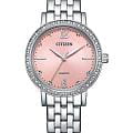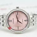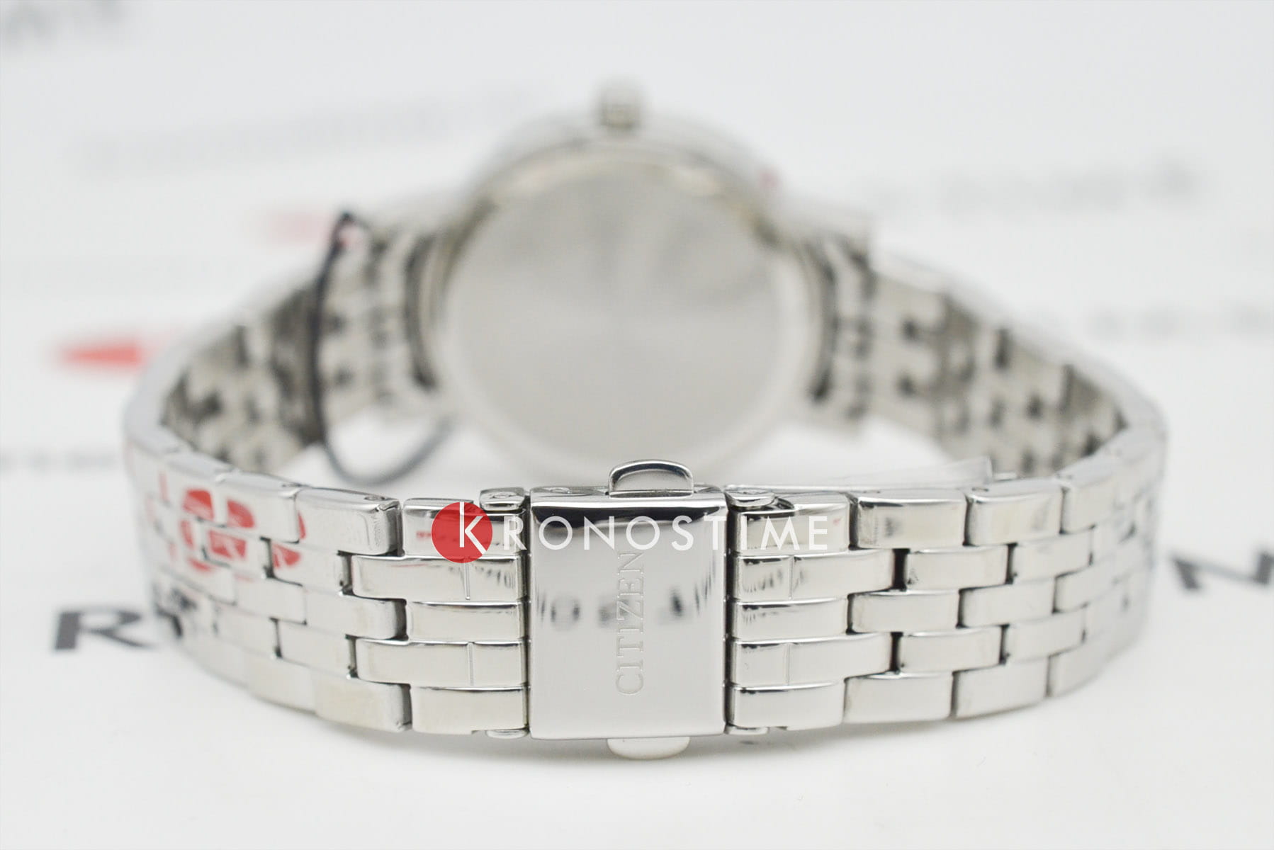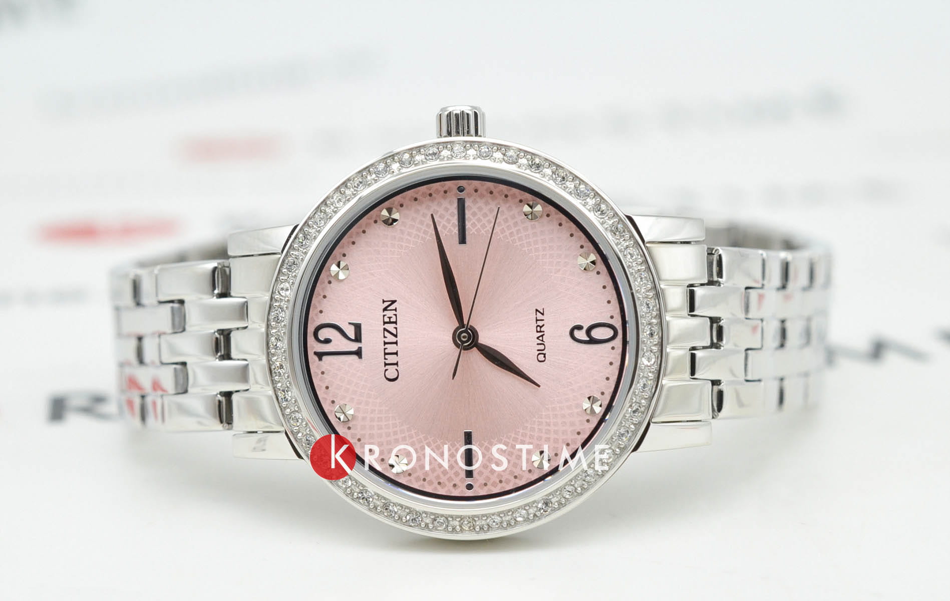 Часы Citizen EL3100-55W представляют собой элегантную модель, выполненную в Японии, сочетающую в себе современные технологии и утончённый дизайн. Корпус и браслет изготовлены из прочной нержавеющей стали, что обеспечивает долговечность и привлекательный внешний вид. Диаметр корпуса составляет 31 мм, а толщина — всего 7 мм, что делает часы изящными и аккуратными на запястье. Особое внимание привлекает безельБезельВнешний ободок, закрепляющий стекло. В спортивных часах так называется поворотное кольцо с делениями на циферблате, выполняет роль таймера – замеряет отрезки времени на шкале. Неподвижный безель – элемент декора. Однонаправленно вращающийся безель на дайверских часах позволяет фиксировать моменты погружения и выныривания на поверхность., украшенный мерцающими кристаллами, которые придают часам особый шарм и изысканность. Надёжный кварцевый механизм гарантирует точность хода, а водозащита уровня WR 50 позволяет не снимать часы при мытье рук или во время дождя. Нежно-розовый циферблат украшен часовыми индексами в виде точек и цифр, а также оснащён центральными стрелками часов, минут и секунд для удобного считывания времени и кристаллами. Минеральное стеклоМинеральное стеклоМинеральное стекло представляет собой искусственно выращенный минерал кварца. Такое стекло отличается особой устойчивостью к повреждениям и царапинам. Уступает по некоторым качествам сапфировому стеклу. устойчиво к появлению мелких царапин, сохраняя прозрачность и презентабельный вид. Стальной браслет с раскладной застёжкойРаскладная застёжкаТакой тип застёжки используется только на браслетах из металла. Она никогда не раскрывается полностью, происходит разделение на 2 и более частей. Раскладывающая застёжка снизит вероятность потери часов к минимуму. надежно фиксирует часы на запястье, обеспечивая комфорт при ежедневном ношении.
