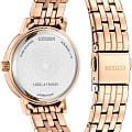 Часы Citizen EL3108-53D представляют собой элегантную модель, выполненную в Японии, сочетающую в себе современные технологии и утончённый дизайн. Корпус и браслет изготовлены из прочной нержавеющей стали с золотистым IP-покрытиемIP-покрытиеМетод ионного напыления. Демонстрирует повышенную устойчивость к истиранию, окислению и химическим веществам. Под воздействием высокого давления и температуры около 1500°C молекулы металла надёжно соединяются с частицами корпуса часов., что обеспечивает долговечность и привлекательный внешний вид. Диаметр корпуса составляет 31 мм, а толщина — всего 7 мм, что делает часы изящными и аккуратными на запястье. Особое внимание привлекает безельБезельВнешний ободок, закрепляющий стекло. В спортивных часах так называется поворотное кольцо с делениями на циферблате, выполняет роль таймера – замеряет отрезки времени на шкале. Неподвижный безель – элемент декора. Однонаправленно вращающийся безель на дайверских часах позволяет фиксировать моменты погружения и выныривания на поверхность., украшенный мерцающими кристаллами, которые придают часам особый шарм и изысканность. Надёжный кварцевый механизм гарантирует точность хода, а водозащита уровня WR 50 позволяет не снимать часы при мытье рук или во время дождя. Перламутровый циферблат украшен часовыми индексами в виде точек и цифр, а также оснащён центральными стрелками часов, минут и секунд для удобного считывания времени и кристаллами. Минеральное стеклоМинеральное стеклоМинеральное стекло представляет собой искусственно выращенный минерал кварца. Такое стекло отличается особой устойчивостью к повреждениям и царапинам. Уступает по некоторым качествам сапфировому стеклу. устойчиво к появлению мелких царапин, сохраняя прозрачность и презентабельный вид.  Стальной браслет с золотистым  IP-покрытиемIP-покрытиеМетод ионного напыления. Демонстрирует повышенную устойчивость к истиранию, окислению и химическим веществам. Под воздействием высокого давления и температуры около 1500°C молекулы металла надёжно соединяются с частицами корпуса часов. и раскладной застёжкойРаскладная застёжкаТакой тип застёжки используется только на браслетах из металла. Она никогда не раскрывается полностью, происходит разделение на 2 и более частей. Раскладывающая застёжка снизит вероятность потери часов к минимуму. надежно фиксирует часы на запястье, обеспечивая комфорт при ежедневном ношении.