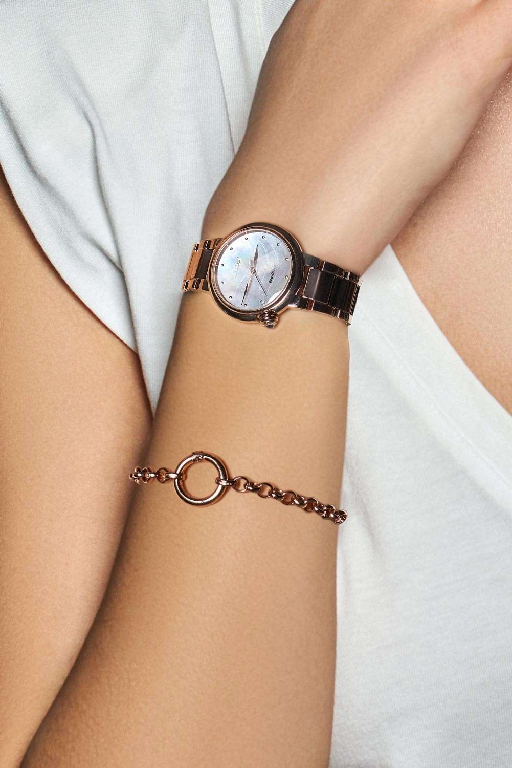 Часы Citizen EM0912-84Y — воплощение изысканности и современных технологий, выполненное в Японии. Корпус и литой браслет изготовлены из прочной нержавеющей стали с золотистым IP-покрытиемIP-покрытиеМетод ионного напыления. Демонстрирует повышенную устойчивость к истиранию, окислению и химическим веществам. Под воздействием высокого давления и температуры около 1500°C молекулы металла надёжно соединяются с частицами корпуса часов., что гарантирует долговечность и элегантный внешний вид. Перламутровый розовый циферблат с завораживающими переливами украшен бриллиантом, а часовые метки выполнены в виде точек, что придаёт образу особую утонченность. Заводная головка с защитой находится в положении 8 часов и также украшена камнем. Защиту от царапин обеспечивает сапфировое стеклоСапфировое стеклоПрочный и надёжный материал из кристалла сапфира синтетического происхождения, характеризующийся особой твёрдостью и устойчивостью к царапинам и повреждениям., сохраняющее безупречный вид часов на длительное время. Модель оснащена инновационной системой Eco-Drive, работающей на солнечной энергии и не требующей замены батарейки, с запасом хода до 180 дней. Предусмотрена функция индикации уровня заряда (EOLEOLПредставляет собой систему, уведомляющую владельца часов о необходимости замены элемента питания. За 2 недели до полного разряда батарейки секундная стрелка перестаёт ходить чётко и начинает перепрыгивать на 3-4 деления.) и предотвращения перезарядки. Диаметр корпуса составляет 30 мм, толщина — 8,5 мм, вес — 74 г, что обеспечивает комфортное ношение в течение всего дня. Водозащита уровня 50WR позволяет не снимать часы при мытье рук или в дождливую погоду. Браслет с застежкой «бабочка»Застёжка "бабочка"Такой вид застёжки дополняется предохранителями, помогающими избежать случайного раскрытия браслета. Обладают изящным исполнением. обеспечивает дополнительный комфорт и безопасность при носке. Эта модель станет не только стильным аксессуаром, но и символом безупречного вкуса и внимания к деталям.