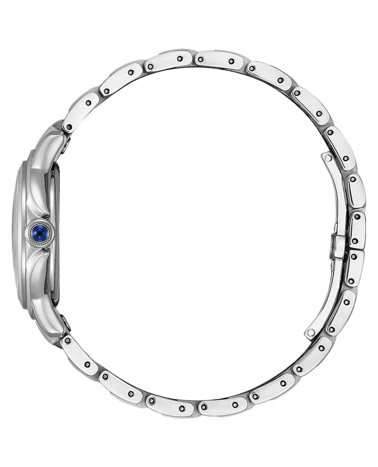 Часы Citizen EM1160-58E — это стильная модель, созданная для современных женщин, которые ценят элегантность и надёжность. Корпус диаметром 31,5 мм и толщиной 8,7 мм выполнен из прочной нержавеющей стали, что обеспечивает долговечность и изысканный внешний вид. Серебристый браслет из нержавеющей стали удобно фиксируется на запястье благодаря застежке «бабочка»Застёжка "бабочка"Такой вид застёжки дополняется предохранителями, помогающими избежать случайного раскрытия браслета. Обладают изящным исполнением. . Черный циферблат украшен римскими цифрами и аккуратными штрихами, а центральные часовая, минутная и секундная стрелки обеспечивают точное отображение времени. Защиту от случайных царапин гарантирует сапфировое стеклоСапфировое стеклоПрочный и надёжный материал из кристалла сапфира синтетического происхождения, характеризующийся особой твёрдостью и устойчивостью к царапинам и повреждениям., обладающее высокой прочностью. Благодаря инновационному механизму Eco-Drive Caliber E031 часы работают на солнечной энергии и не требуют замены батарейки. Водонепроницаемость уровня WR 50 позволяет не беспокоиться о контакте с водой во время мытья рук или под дождём. Японское качество исполнения и дизайн делают эти часы отличным выбором для повседневного ношения и особых случаев.