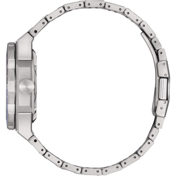 Citizen SERIES 8 NB6031-56E мужские часы спортивного дизайна с высоким уровнем водозащиты. Корпус из нержавеющей стали диаметром 41 мм идеально сбалансирован. Сапфировое стеклоСапфировое стеклоПрочный и надёжный материал из кристалла сапфира синтетического происхождения, характеризующийся особой твёрдостью и устойчивостью к царапинам и повреждениям. с антибликовым покрытием обеспечивает отличную защиту циферблата от царапин. Механические часы с автоподзаводом. Стальной браслет на раскладной застёжкеРаскладная застёжкаТакой тип застёжки используется только на браслетах из металла. Она никогда не раскрывается полностью, происходит разделение на 2 и более частей. Раскладывающая застёжка снизит вероятность потери часов к минимуму. идеально дополняют дизайн часов, обеспечивая комфортное ношение. Стрелки и метки на циферблате имеют люминесцентное покрытиеЛюминесцентное покрытиеПозволяет считывать показания времени в темноте. Производители наносят на стрелки, часовые индексы, безель или поверхность циферблата светонакопительный состав, дающий холодное свечение. позволяющее легко определять время даже в темноте. БезельБезельВнешний ободок, закрепляющий стекло. В спортивных часах так называется поворотное кольцо с делениями на циферблате, выполняет роль таймера – замеряет отрезки времени на шкале. Неподвижный безель – элемент декора. Однонаправленно вращающийся безель на дайверских часах позволяет фиксировать моменты погружения и выныривания на поверхность. с IP-покрытиемIP-покрытиеМетод ионного напыления. Демонстрирует повышенную устойчивость к истиранию, окислению и химическим веществам. Под воздействием высокого давления и температуры около 1500°C молекулы металла надёжно соединяются с частицами корпуса часов.. Окошко даты находится в положении 3 часа. Магнитоустойчивость 16000 а/м. Запас хода около 50 часов. Часы обладают впечатляющей водонепроницаемостью до 100WR, что делает их идеальными для повседневной носки. Прозрачная задняя крышка.