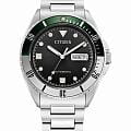 Мужские наручные часы Citizen Automatic NH7531-50E - сочетание спортивного стиля и повседневной функциональности. Корпус из нержавеющей стали диаметром 42 мм идеально сбалансирован. Сапфировое стеклоСапфировое стеклоПрочный и надёжный материал из кристалла сапфира синтетического происхождения, характеризующийся особой твёрдостью и устойчивостью к царапинам и повреждениям. обеспечивает отличную защиту циферблата от царапин. Механические часы с автоподзаводом. Стальной браслет на раскладной застёжкеРаскладная застёжкаТакой тип застёжки используется только на браслетах из металла. Она никогда не раскрывается полностью, происходит разделение на 2 и более частей. Раскладывающая застёжка снизит вероятность потери часов к минимуму. идеально дополняют дизайн часов, обеспечивая комфортное ношение. Окошко даты и дня недели в положении 3 часа. Стрелки и метки с люминесцентным покрытиемЛюминесцентное покрытиеПозволяет считывать показания времени в темноте. Производители наносят на стрелки, часовые индексы, безель или поверхность циферблата светонакопительный состав, дающий холодное свечение.. Однонаправленный вращающийся безельБезельВнешний ободок, закрепляющий стекло. В спортивных часах так называется поворотное кольцо с делениями на циферблате, выполняет роль таймера – замеряет отрезки времени на шкале. Неподвижный безель – элемент декора. Однонаправленно вращающийся безель на дайверских часах позволяет фиксировать моменты погружения и выныривания на поверхность. с IP-покрытиемIP-покрытиеМетод ионного напыления. Демонстрирует повышенную устойчивость к истиранию, окислению и химическим веществам. Под воздействием высокого давления и температуры около 1500°C молекулы металла надёжно соединяются с частицами корпуса часов.. Завинчивающаяся прозрачная задняя крышка. Циферблат с часовыми индексами в виде штрихов и точек. Часы обладают водонепроницаемостью до 100WR, что делает их идеальными для повседневной носки.