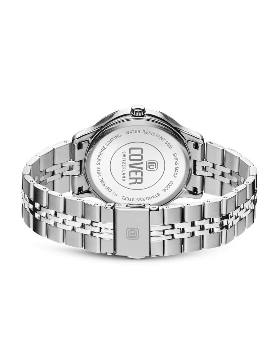 Женские наручные часы Cover Saraya CO206.01 сочетают в себе элегантный дизайн и надежность современных технологий. Модель обладает круглым корпусом диаметром 36 мм, изготовленным из нержавеющей стали, что обеспечивает высокую устойчивость к внешним воздействиям. Корпус декорирован кристаллами Swarowsky, которые придают часам особый шик и неповторимый вид. Для защиты используется сапфировое стеклоСапфировое стеклоПрочный и надёжный материал из кристалла сапфира синтетического происхождения, характеризующийся особой твёрдостью и устойчивостью к царапинам и повреждениям., обеспечивающее прочную защиту от царапин. Браслет выполнен из нержавеющей стали на раскладной застёжкеРаскладная застёжкаТакой тип застёжки используется только на браслетах из металла. Она никогда не раскрывается полностью, происходит разделение на 2 и более частей. Раскладывающая застёжка снизит вероятность потери часов к минимуму., которая отличается удобством использования. Часы работают на кварцевом механизме, основанном на ETA 902.002, что гарантирует точное время без необходимости подзаводки. Водонепроницаемость часов составляет 5 атмосфер, что позволяет использовать их в повседневной жизни, однако не рекомендуется для плавания или водных видов спорта.