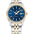 Часы COVER CO209.09 из коллекции Alston – элегантная модель швейцарского производства. Эти часы станут идеальным аксессуаром для элегантных дам, которые ценят стиль и качество. Браслет с раскладной застёжкойРаскладная застёжкаТакой тип застёжки используется только на браслетах из металла. Она никогда не раскрывается полностью, происходит разделение на 2 и более частей. Раскладывающая застёжка снизит вероятность потери часов к минимуму. и безельБезельВнешний ободок, закрепляющий стекло. В спортивных часах так называется поворотное кольцо с делениями на циферблате, выполняет роль таймера – замеряет отрезки времени на шкале. Неподвижный безель – элемент декора. Однонаправленно вращающийся безель на дайверских часах позволяет фиксировать моменты погружения и выныривания на поверхность. изготовлены из нержавеющей стали с PVDPVDУльтратонкое покрытие наносится в технике вакуумного напыления, сочетает в себе нитрид титана особой прочности со слоем золота или оксида хрома. Несёт в себе декоративную или защитную функцию. покрытием золотого цвета, корпус имеет диаметр 30 мм. На синем циферблате расположены накладные римские цифры. Надежное минеральное стеклоМинеральное стеклоМинеральное стекло представляет собой искусственно выращенный минерал кварца. Такое стекло отличается особой устойчивостью к повреждениям и царапинам. Уступает по некоторым качествам сапфировому стеклу. защищает часы от царапин и долго сохраняет первоначальный внешний вид. Они показывают день месяца, индикатор которых с накладной рамкой расположен в положении «3 часа». Водозащита 50 метров делает часы практичными для повседневного использования. На часовую, минутную стрелки нанесено люминесцентное покрытиеЛюминесцентное покрытиеПозволяет считывать показания времени в темноте. Производители наносят на стрелки, часовые индексы, безель или поверхность циферблата светонакопительный состав, дающий холодное свечение., которое светится в темноте, создавая необычное изображение. Эти часы идеально подойдут для светских раутов, бизнес-встреч и других важных событий, подчеркнут вашу элегантность и статус.