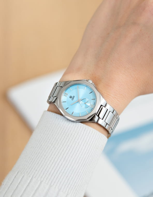 Женские швейцарские часы COVER CO211.01 — это изысканный повседневный аксессуар с оригинальным 12-угольным стальным корпусом из коллекции Cardea. Часы оснащены кварцевым калибром ETA 902.501. Голубой циферблат с круговой сатинированной отделкой и узором Sunray придает им элегантный вид. Накладные индексы и римские цифры VI и XII добавляют стильный акцент. Малая секундная стрелка расположена в положении «6 часов». Интегрированный браслет на раскладной застёжкеРаскладная застёжкаТакой тип застёжки используется только на браслетах из металла. Она никогда не раскрывается полностью, происходит разделение на 2 и более частей. Раскладывающая застёжка снизит вероятность потери часов к минимуму. обеспечивает комфорт и надежность. Часы имеют маркировку «Swiss Made», что подтверждает их высокое качество и точность.