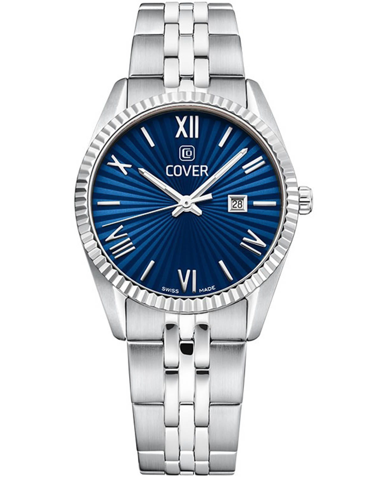 Часы COVER CO217.03 из коллекции Alston – элегантная модель швейцарского производства. Эти часы станут идеальным аксессуаром для элегантных дам, которые ценят стиль и качество. Корпус и браслет с раскладной застёжкойРаскладная застёжкаТакой тип застёжки используется только на браслетах из металла. Она никогда не раскрывается полностью, происходит разделение на 2 и более частей. Раскладывающая застёжка снизит вероятность потери часов к минимуму. изготовлены из нержавеющей стали, имеют диаметр 30 мм. На синем циферблате расположены накладные римские цифры. Надежное минеральное стеклоМинеральное стеклоМинеральное стекло представляет собой искусственно выращенный минерал кварца. Такое стекло отличается особой устойчивостью к повреждениям и царапинам. Уступает по некоторым качествам сапфировому стеклу. защищает часы от царапин и долго сохраняет первоначальный внешний вид. Они показывают день месяца, индикатор которых с накладной рамкой расположен в положении «3 часа». Водозащита 50 метров делает часы практичными для повседневного использования. На часовую, минутную стрелки нанесено люминесцентное покрытиеЛюминесцентное покрытиеПозволяет считывать показания времени в темноте. Производители наносят на стрелки, часовые индексы, безель или поверхность циферблата светонакопительный состав, дающий холодное свечение., которое светится в темноте, создавая необычное изображение. Эти часы идеально подойдут для светских раутов, бизнес-встреч и других важных событий, подчеркнут вашу элегантность и статус.