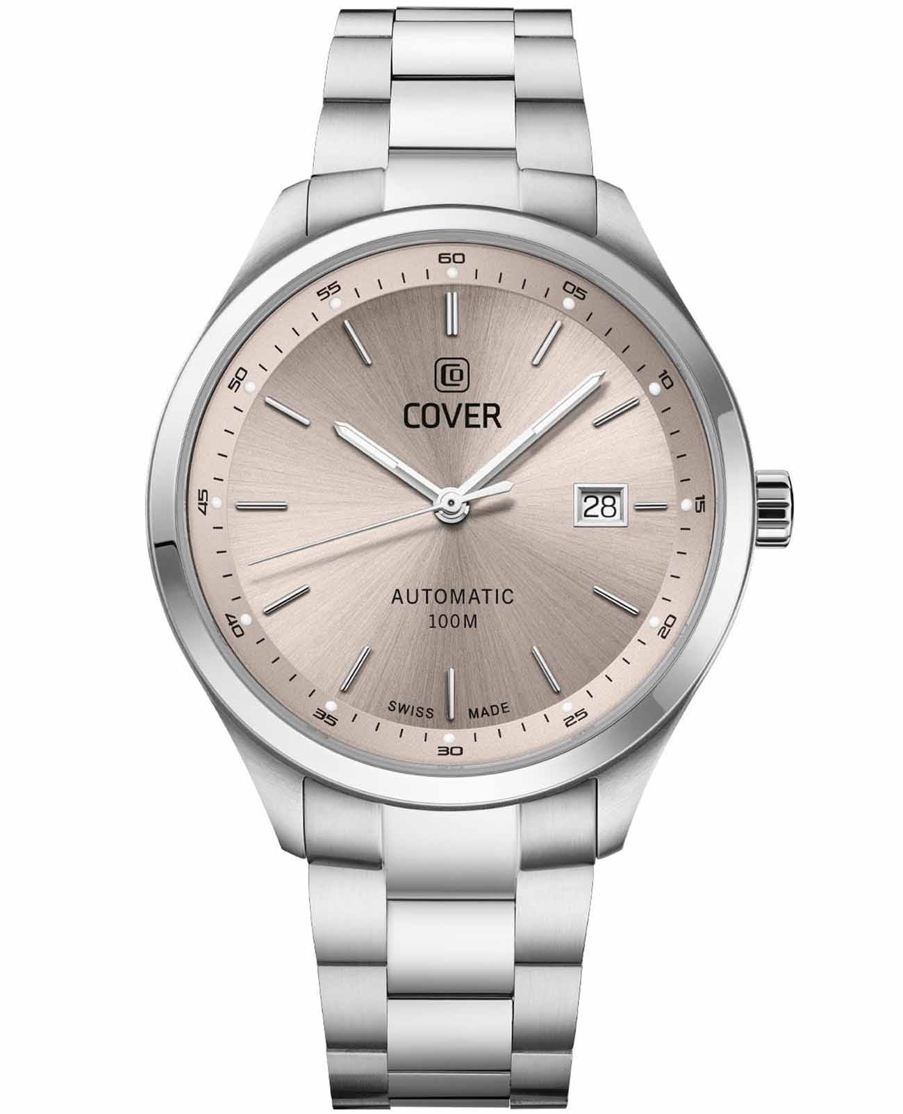 Часы COVER Arena Automatic COA225.03 представляют собой идеальное сочетание элегантности и надежности в мире швейцарских автоматических часов. Эти часы выделяются смелым дизайном, который подчеркивается корпусом из нержавеющей стали диаметром 42 мм и бежевым циферблатом с светящимися стрелками и метками благодаря люминесцентному покрытиюЛюминесцентное покрытиеПозволяет считывать показания времени в темноте. Производители наносят на стрелки, часовые индексы, безель или поверхность циферблата светонакопительный состав, дающий холодное свечение.. Окошко даты, расположенное на отметке «3 часа», поможет вам всегда оставаться в курсе текущих дел. Все это защищено устойчивым к царапинам сапфировым стекломСапфировое стеклоПрочный и надёжный материал из кристалла сапфира синтетического происхождения, характеризующийся особой твёрдостью и устойчивостью к царапинам и повреждениям.. Браслет, выполненный из полированной и матовой нержавеющей стали с раскладной застёжкойРаскладная застёжкаТакой тип застёжки используется только на браслетах из металла. Она никогда не раскрывается полностью, происходит разделение на 2 и более частей. Раскладывающая застёжка снизит вероятность потери часов к минимуму., придает часам утонченность и долговечность. Часы оснащены швейцарским автоматическим механизмом и водостойкостью до 10 ATM, что делает их надежными в любых условиях. Эти часы станут отличным выбором для тех, кто ценит швейцарское мастерство и стильный дизайн.