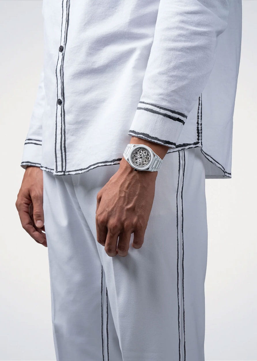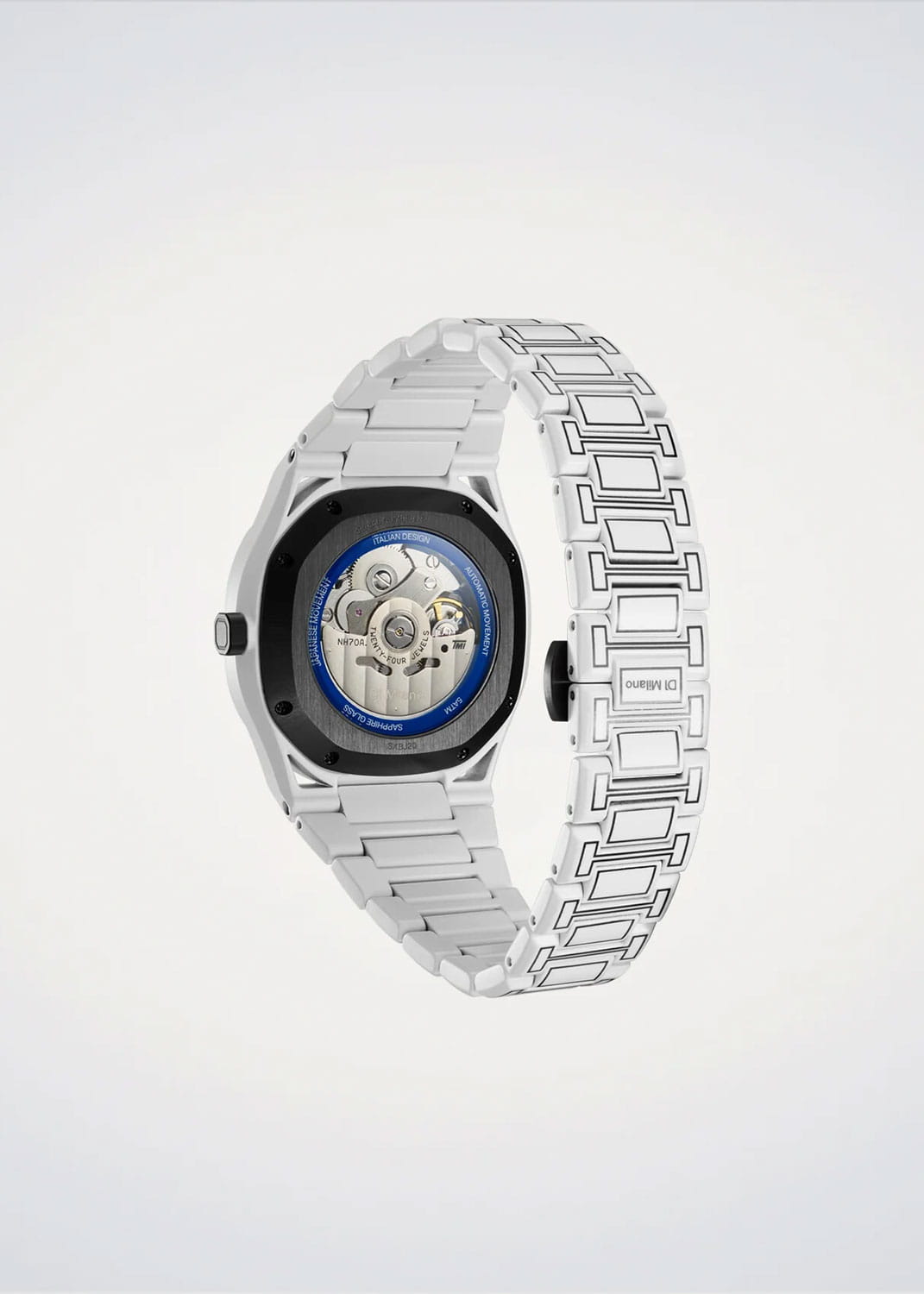 Часы D1 Milano Skeleton SKBJ20 — это эффектные механические мужские часы, разработанные для ценителей уникальных аксессуаров. Их утонченный дизайн и высокое качество исполнения делают эти часы незаменимым элементом вашего стиля. Изготовленные в Италии, они оснащены надежным механизмом Seiko TMI NH70L с автоподзаводом, обеспечивающими запас хода до 41 часа. Частота работы механизма составляет 21600 полуколебаний в час. Часы имеют корпус из нержавеющей стали с керамическим покрытием Cerakote, что гарантирует долговечность и стойкость к внешним воздействиям. Скелетонизированный циферблат защищен сапфировым стекломСапфировое стеклоПрочный и надёжный материал из кристалла сапфира синтетического происхождения, характеризующийся особой твёрдостью и устойчивостью к царапинам и повреждениям. с антибликовым покрытиемАнтибликовое покрытиеСлой оксида металла в 0,13-0,3 микрон, благодаря которому стекло часов не бликует и не отражает свет. Антибликовое покрытие уменьшает отражение света в 10 раз, обеспечивая отличную читаемость показателей циферблата., подчеркивающим элегантность и изысканность модели и защищает от царапин. Метки в виде штрихов и прозрачная задняя крышка, закрепленная на 8 винтах, придают часам особый шарм. Стальной браслет на застёжке-бабочке с кнопкамиЗастёжка "бабочка"Такой вид застёжки дополняется предохранителями, помогающими избежать случайного раскрытия браслета. Обладают изящным исполнением. обеспечивает комфортное и надежное ношение. Водозащита до 50 WR делает эти часы подходящими для повседневного использования.