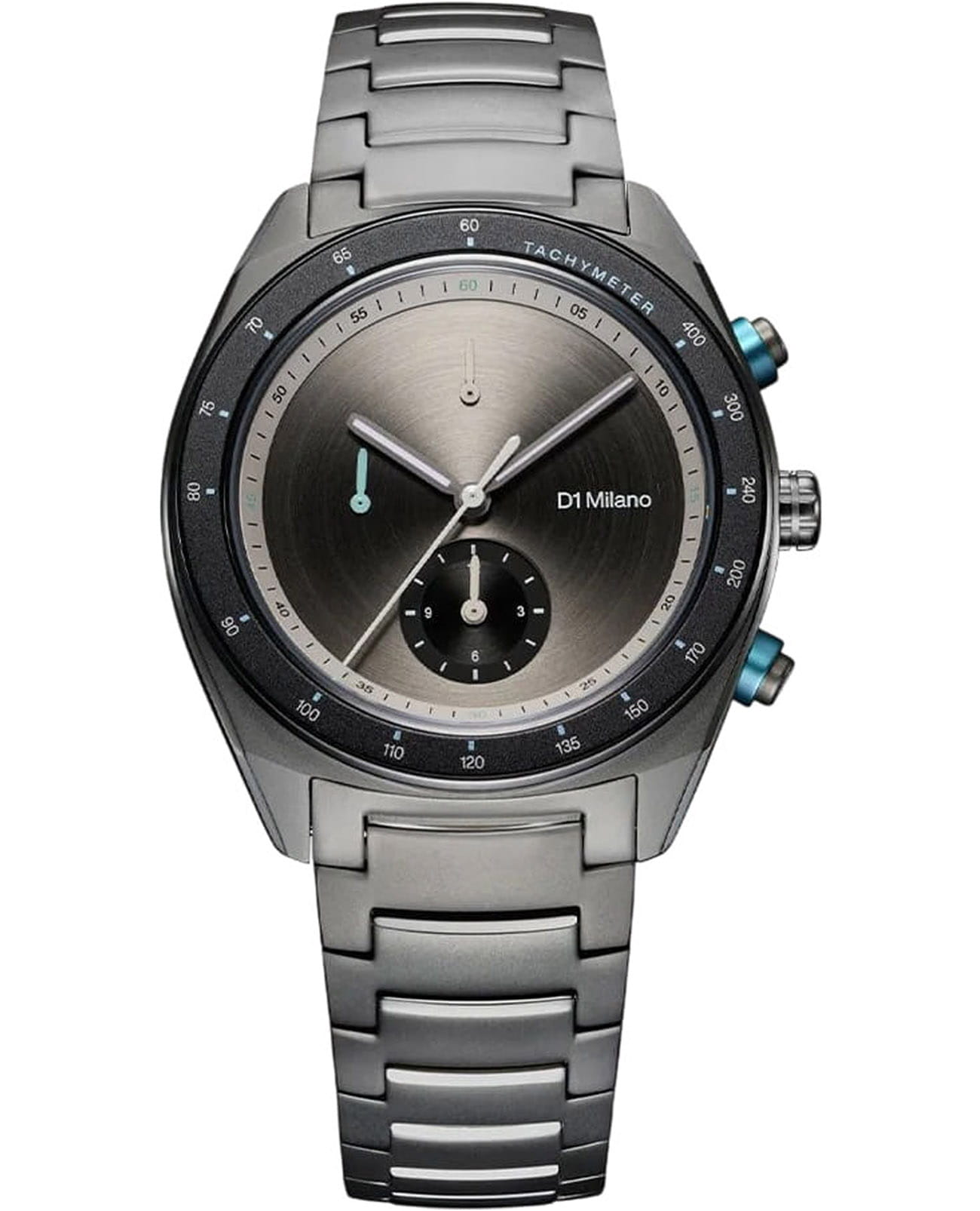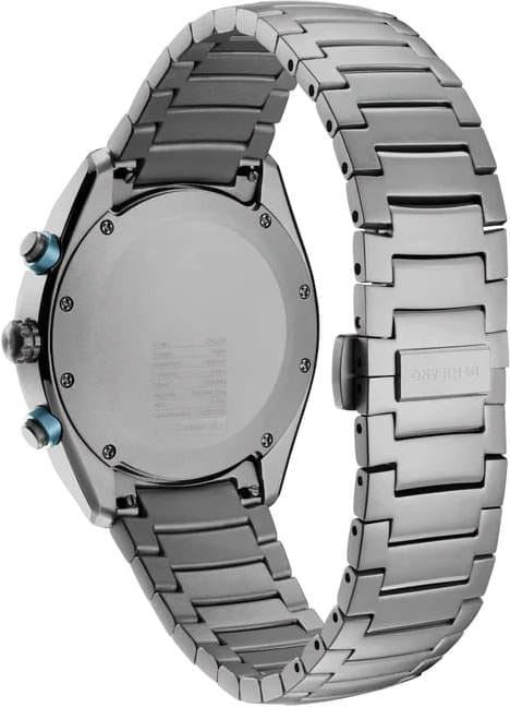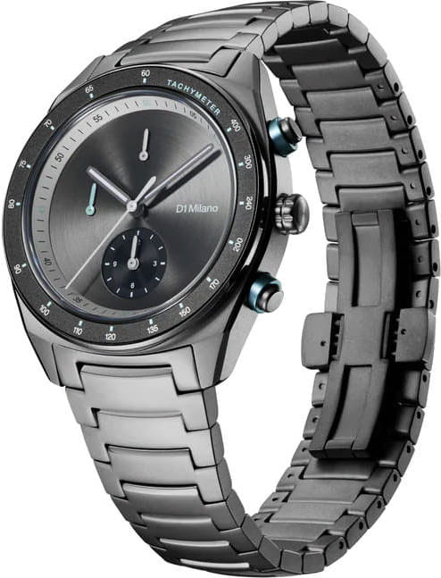 Элегантный хронограф D1 Milano Cronografo Essential Black CHBJ21 - идеальное воплощение мужественности и стиля. Этот многофункциональный аксессуар оснащен секундомером, тахиметромТахиметрРазмеченная шкала, располагается на ободке или безеле часов. Тахиметр позволяет рассчитать скорость на определённом участке пути, расстояние измеряется в километрах или милях.. что делает его незаменимым компаньоном в повседневной жизни. Изысканный корпус и браслет выполнены из стали с PVD-покрытиемPVDУльтратонкое покрытие наносится в технике вакуумного напыления, сочетает в себе нитрид титана особой прочности со слоем золота или оксида хрома. Несёт в себе декоративную или защитную функцию.. Неподвижный безельБезельВнешний ободок, закрепляющий стекло. В спортивных часах так называется поворотное кольцо с делениями на циферблате, выполняет роль таймера – замеряет отрезки времени на шкале. Неподвижный безель – элемент декора. Однонаправленно вращающийся безель на дайверских часах позволяет фиксировать моменты погружения и выныривания на поверхность. из нержавеющей стали с PVD-покрытиемPVDУльтратонкое покрытие наносится в технике вакуумного напыления, сочетает в себе нитрид титана особой прочности со слоем золота или оксида хрома. Несёт в себе декоративную или защитную функцию.. Минималистичный дизайн циферблата, защищенный прочным сапфировым стекломСапфировое стеклоПрочный и надёжный материал из кристалла сапфира синтетического происхождения, характеризующийся особой твёрдостью и устойчивостью к царапинам и повреждениям. с антибликовым покрытиемАнтибликовое покрытиеСлой оксида металла в 0,13-0,3 микрон, благодаря которому стекло часов не бликует и не отражает свет. Антибликовое покрытие уменьшает отражение света в 10 раз, обеспечивая отличную читаемость показателей циферблата., привлекает внимание своей сдержанной красотой.  Стрелки с люминесцентным покрытиемЛюминесцентное покрытиеПозволяет считывать показания времени в темноте. Производители наносят на стрелки, часовые индексы, безель или поверхность циферблата светонакопительный состав, дающий холодное свечение., обеспечивающим хорошую читаемость в темноте. Надежная конструкция с задней крышкой на 8 винтах и стильный браслет с удобной застёжкой «бабочка» с кнопкамиЗастёжка "бабочка"Такой вид застёжки дополняется предохранителями, помогающими избежать случайного раскрытия браслета. Обладают изящным исполнением. обеспечивают комфорт при ношении. Водозащита 50 метров защищает часы от брызг и дождя, делая их подходящими для повседневного использования.  Это не просто часы, а статусный аксессуар, подчеркивающий безупречный вкус и внимание к деталям своего владельца.