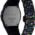 Часы D1 Milano Polycarbon PCBU11 – молодежные часы в стиле унисекс для повседневных образов, стильные и комфортные. Модель Poly Dot имеет черные с цветными брызгами корпус и браслет из поликарбоната с покрытием Софт-Тач. Циферблат лаконичный, защищен минеральным стекломМинеральное стеклоМинеральное стекло представляет собой искусственно выращенный минерал кварца. Такое стекло отличается особой устойчивостью к повреждениям и царапинам. Уступает по некоторым качествам сапфировому стеклу. с антибликовым покрытием. Стальная задняя крышка на 4 винтах. Пластиковый браслет на застёжке-бабочке с кнопкамиЗастёжка "бабочка"Такой вид застёжки дополняется предохранителями, помогающими избежать случайного раскрытия браслета. Обладают изящным исполнением. .