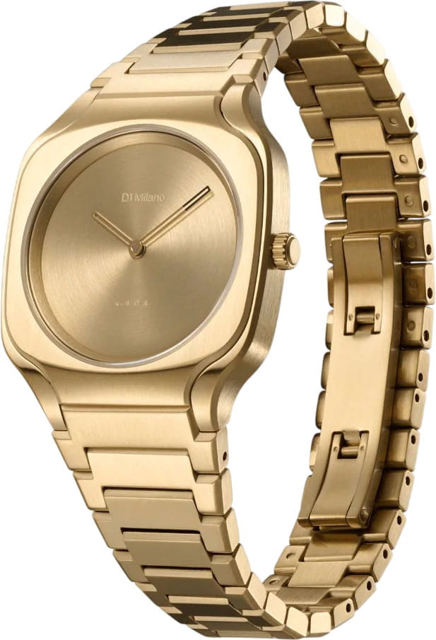 Часы D1 Milano Square Disco Gold SQBL03 — это уникальные кварцевые часы, которые подчеркнут ваш изысканный стиль. Эти наручные часы с эффектным монохромным дизайном станут выразительным акцентом вашего образа. Изысканный корпус из стали 316L с PVD-покрытиемPVDУльтратонкое покрытие наносится в технике вакуумного напыления, сочетает в себе нитрид титана особой прочности со слоем золота или оксида хрома. Несёт в себе декоративную или защитную функцию. диаметром 32 мм придает часам современный и утонченный вид. Золотой циферблат, выполненный по технологии Sunray, а изысканные стрелки создают стильный контраст, подчёркивая элегантность модели. Задняя крышка закреплена на 4-х винтах. Стальной браслет с PVD-покрытиемPVDУльтратонкое покрытие наносится в технике вакуумного напыления, сочетает в себе нитрид титана особой прочности со слоем золота или оксида хрома. Несёт в себе декоративную или защитную функцию. с застёжкой «бабочка»Застёжка "бабочка"Такой вид застёжки дополняется предохранителями, помогающими избежать случайного раскрытия браслета. Обладают изящным исполнением. обеспечивает надежность и комфорт в повседневном использовании. Сапфировое стеклоСапфировое стеклоПрочный и надёжный материал из кристалла сапфира синтетического происхождения, характеризующийся особой твёрдостью и устойчивостью к царапинам и повреждениям. с антибликовым покрытиемАнтибликовое покрытиеСлой оксида металла в 0,13-0,3 микрон, благодаря которому стекло часов не бликует и не отражает свет. Антибликовое покрытие уменьшает отражение света в 10 раз, обеспечивая отличную читаемость показателей циферблата. защищает циферблат, а водозащита до 50WR делает эти часы практичным выбором для любых условий. Благодаря калибру Miyota 1L22 часы отличается точностью и надежностью. Эти итальянские часы представляют собой идеальное сочетание традиционного мастерства и инновационного подхода, воплощая в себе новый взгляд на классическую элегантность.