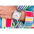 Женские наручные часы D1 Milano UTBL01 из коллекции Ultra Thin сочетают в себе классический дизайн и современные технологии. Модель обладает восьмиугольным корпусом диаметром 38 мм, изготовленным из нержавеющей стали 316L, что обеспечивает высокую устойчивость к внешним воздействиям. Браслет также выполнен из нержавеющей стали с раскладной застежкойРаскладной замокДанный вариант застежки используется только на часах с металлическим браслетом. Отличительная особенность такого крепления в том, что длина браслета становится универсальной и вы можете самостоятельно отрегулировать нужный вам размер – застежка просто двигается по браслету часов., гарантирующей комфортное ношение и безопасность. Белый циферблат украшен метками и оснащен стрелочным механизмом, который подчеркивает элегантность модели. Для защиты используется сапфировое стеклоСапфировое стеклоПрочный и надёжный материал из кристалла сапфира синтетического происхождения, характеризующийся особой твёрдостью и устойчивостью к царапинам и повреждениям. с антибликовым покрытиемАнтибликовое покрытиеСлой оксида металла в 0,13-0,3 микрон, благодаря которому стекло часов не бликует и не отражает свет. Антибликовое покрытие уменьшает отражение света в 10 раз, обеспечивая отличную читаемость показателей циферблата., обеспечивающее прочную защиту от царапин и бликов. Часы работают на кварцевом механизме, что гарантирует точность хода с погрешностью +/- 15 секунд в месяц, не требуя регулярного подзавода. Водонепроницаемость часов достигает 5 атмосфер (50 метров), что позволяет использовать их во время мытья рук или плавания, однако не рекомендуется для глубоководного дайвинга. Толщина ультратонкого корпуса составляет всего 6 мм, делая аксессуар легким и удобным для повседневного использования.