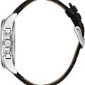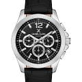 Мужские кварцевые часы Daniel Klein — это продуманный и практичный аксессуар. Корпус диаметром 43 мм выполнен из нержавеющей стали. Циферблат чёрного цвета оформлен штрихами, арабской цифрой 12 и стрелками. Присутствуют индикаторы 24-часового формата времени и второго часового пояса (GMTВторой часовой поясФункция, позволяющая отображать время двух часовых поясов одновременно.). Окошко даты расположено между 4 и 5 часами. Стрелки и метки с люминесцентным покрытиемЛюминесцентное покрытиеПозволяет считывать показания времени в темноте. Производители наносят на стрелки, часовые индексы, безель или поверхность циферблата светонакопительный состав, дающий холодное свечение., обеспечивающим хорошую читаемость в темноте. Циферблат защищён минеральным стекломМинеральное стеклоМинеральное стекло представляет собой искусственно выращенный минерал кварца. Такое стекло отличается особой устойчивостью к повреждениям и царапинам. Уступает по некоторым качествам сапфировому стеклу.. Заводная головка рифлёная, с защитой. Часы оснащены ремешком из натуральной кожи на классической пряжке. Водонепроницаемость 50 м позволяет использовать часы в повседневных условиях. Идеальный выбор для тех, кто ценит турецкое качество и универсальный дизайн.