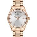 Женские кварцевые часы Daniel Klein — это обворожительный аксессуар, сочетающий стиль и безупречность. Корпус диаметром 34 мм выполнен из металла с IP-покрытиемIP-покрытиеМетод ионного напыления. Демонстрирует повышенную устойчивость к истиранию, окислению и химическим веществам. Под воздействием высокого давления и температуры около 1500°C молекулы металла надёжно соединяются с частицами корпуса часов. цвета розового золота. Циферблат серебристого цвета выполнен по технологии Sunray («солнечные лучи») и оформлен точками с кристаллами и стрелками. Окошко дня недели расположено в положении 12 часов, окошко даты — в положении 3 часов. Стрелки с люминесцентным покрытиемЛюминесцентное покрытиеПозволяет считывать показания времени в темноте. Производители наносят на стрелки, часовые индексы, безель или поверхность циферблата светонакопительный состав, дающий холодное свечение., обеспечивающим хорошую читаемость в темноте. Циферблат защищён минеральным стекломМинеральное стеклоМинеральное стекло представляет собой искусственно выращенный минерал кварца. Такое стекло отличается особой устойчивостью к повреждениям и царапинам. Уступает по некоторым качествам сапфировому стеклу.. Часы оснащены стальным браслетом с IP-покрытиемIP-покрытиеМетод ионного напыления. Демонстрирует повышенную устойчивость к истиранию, окислению и химическим веществам. Под воздействием высокого давления и температуры около 1500°C молекулы металла надёжно соединяются с частицами корпуса часов. на раскладной застёжкеРаскладная застёжкаТакой тип застёжки используется только на браслетах из металла. Она никогда не раскрывается полностью, происходит разделение на 2 и более частей. Раскладывающая застёжка снизит вероятность потери часов к минимуму.. Водонепроницаемость 30 м позволяет использовать часы в повседневных условиях. Идеальный выбор для тех, кто ценит турецкое качество и элегантный дизайн.