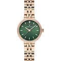 Женские кварцевые часы Daniel Klein — это элегантный и универсальный аксессуар. Корпус диаметром 24 мм выполнен из металла с IP-покрытиемIP-покрытиеМетод ионного напыления. Демонстрирует повышенную устойчивость к истиранию, окислению и химическим веществам. Под воздействием высокого давления и температуры около 1500°C молекулы металла надёжно соединяются с частицами корпуса часов. цвета розового золота. Циферблат зелёного цвета выполнен по технологии Sunray («солнечные лучи») и оформлен штрихами и стрелками. Циферблат защищён минеральным стекломМинеральное стеклоМинеральное стекло представляет собой искусственно выращенный минерал кварца. Такое стекло отличается особой устойчивостью к повреждениям и царапинам. Уступает по некоторым качествам сапфировому стеклу.. Часы оснащены стальным браслетом с IP-покрытиемIP-покрытиеМетод ионного напыления. Демонстрирует повышенную устойчивость к истиранию, окислению и химическим веществам. Под воздействием высокого давления и температуры около 1500°C молекулы металла надёжно соединяются с частицами корпуса часов. на раскладной застёжкеРаскладная застёжкаТакой тип застёжки используется только на браслетах из металла. Она никогда не раскрывается полностью, происходит разделение на 2 и более частей. Раскладывающая застёжка снизит вероятность потери часов к минимуму.. Водонепроницаемость 30 м позволяет использовать часы в повседневных условиях. Идеальный выбор для тех, кто ценит турецкое качество и классический дизайн.