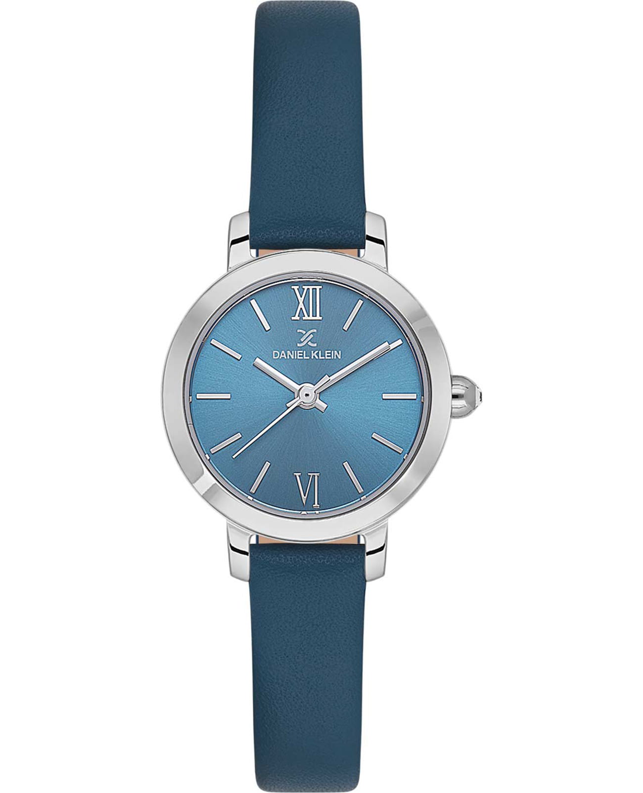 Женские кварцевые часы Daniel Klein — это симпатичный аксессуар в приятном цветовом исполнении. Корпус диаметром 26 мм выполнен из нержавеющей стали. Циферблат синего цвета выполнен по технологии Sunray («солнечные лучи») и оформлен штрихами, римскими цифрами VI и XII и стрелками. Циферблат защищён минеральным стекломМинеральное стеклоМинеральное стекло представляет собой искусственно выращенный минерал кварца. Такое стекло отличается особой устойчивостью к повреждениям и царапинам. Уступает по некоторым качествам сапфировому стеклу.. Часы оснащены кожаным ремешком на классической пряжке. Водонепроницаемость 30 м позволяет использовать часы в повседневных условиях. Идеальный выбор для тех, кто ценит турецкое качество и универсальный дизайн.