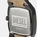 Diesel Cliffhanger DZ2000 – стильные мужские часы, сочетающие современный дизайн и функциональность. Корпус размером 36 мм выполнен из нержавеющей стали с PVD-покрытиемPVDУльтратонкое покрытие наносится в технике вакуумного напыления, сочетает в себе нитрид титана особой прочности со слоем золота или оксида хрома. Несёт в себе декоративную или защитную функцию. в чёрном цвете, что придаёт модели выразительный вид и дополнительную защиту. Чёрный циферблат с солнечным узором и стрелками, покрытыми люминесцентным покрытиемЛюминесцентное покрытиеПозволяет считывать показания времени в темноте. Производители наносят на стрелки, часовые индексы, безель или поверхность циферблата светонакопительный состав, дающий холодное свечение., гарантирует отличную читаемость в любых условиях, а его поверхность защищена минеральным стекломМинеральное стеклоМинеральное стекло представляет собой искусственно выращенный минерал кварца. Такое стекло отличается особой устойчивостью к повреждениям и царапинам. Уступает по некоторым качествам сапфировому стеклу., устойчивым к царапинам. Часы оснащены кварцевым механизмом, обеспечивающим точный ход. Ремешок из чёрной кожи дополнен : стандартной застежкой, обеспечивающей надёжную фиксацию на запястье. Водонепроницаемость 50 метров (5 ATM) делает модель идеальным выбором для повседневного использования и защиты от случайных брызг.