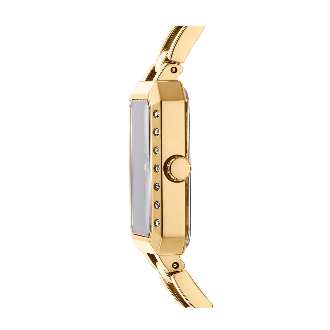 DKNY Uptown Glitz DK1L010M0025 — женские кварцевые часы, объединяющие нью-йоркский гламур и урбанистическую роскошь. Корпус из нержавеющей стали диаметром 36 мм с IP-покрытиемIP-покрытиеМетод ионного напыления. Демонстрирует повышенную устойчивость к истиранию, окислению и химическим веществам. Под воздействием высокого давления и температуры около 1500°C молекулы металла надёжно соединяются с частицами корпуса часов. и минеральное стеклоМинеральное стеклоМинеральное стекло представляет собой искусственно выращенный минерал кварца. Такое стекло отличается особой устойчивостью к повреждениям и царапинам. Уступает по некоторым качествам сапфировому стеклу. обеспечивает защиту от царапин, а водонепроницаемость до 30 метров делает модель практичной для активного отдыха или повседневной носки. Стальной браслет с ювелирной застежкой гарантирует комфорт и надежность. БезельБезельВнешний ободок, закрепляющий стекло. В спортивных часах так называется поворотное кольцо с делениями на циферблате, выполняет роль таймера – замеряет отрезки времени на шкале. Неподвижный безель – элемент декора. Однонаправленно вращающийся безель на дайверских часах позволяет фиксировать моменты погружения и выныривания на поверхность. инкрустирован кристаллами. Идеальный аксессуар для женщин, ценящих смелые городские образы с акцентами роскоши — от деловых встреч до вечерних выходов.