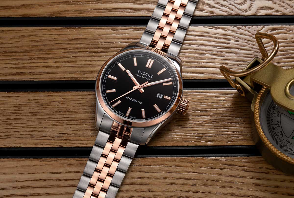 Мужские швейцарские механические часы с автоподзаводом Epos Passion 3501.132.34.15.44. Сапфировое стеклоСапфировое стеклоПрочный и надёжный материал из кристалла сапфира синтетического происхождения, характеризующийся особой твёрдостью и устойчивостью к царапинам и повреждениям. устойчивое к появлению царапин, обладающее высокой прозрачностью. Корпус и браслет часов изготовлен из нержавеющей стали с частичным PVDPVDУльтратонкое покрытие наносится в технике вакуумного напыления, сочетает в себе нитрид титана особой прочности со слоем золота или оксида хрома. Несёт в себе декоративную или защитную функцию. покрытием. Неподвижный безельБезельВнешний ободок, закрепляющий стекло. В спортивных часах так называется поворотное кольцо с делениями на циферблате, выполняет роль таймера – замеряет отрезки времени на шкале. Неподвижный безель – элемент декора. Однонаправленно вращающийся безель на дайверских часах позволяет фиксировать моменты погружения и выныривания на поверхность. из нержавеющей стали с PVDPVDУльтратонкое покрытие наносится в технике вакуумного напыления, сочетает в себе нитрид титана особой прочности со слоем золота или оксида хрома. Несёт в себе декоративную или защитную функцию. покрытием. Стрелки и метки с люминесцентной подсветкойЛюминесцентное покрытиеПозволяет считывать показания времени в темноте. Производители наносят на стрелки, часовые индексы, безель или поверхность циферблата светонакопительный состав, дающий холодное свечение.. Окошко даты находится в положении 3 часов. Прозрачная задняя крышка. Класс водозащиты: 100 метров, позволит плавать, нырять и заниматься другими водными видами спорта. Стальной браслет на раскладной застёжкеРаскладная застёжкаТакой тип застёжки используется только на браслетах из металла. Она никогда не раскрывается полностью, происходит разделение на 2 и более частей. Раскладывающая застёжка снизит вероятность потери часов к минимуму..
