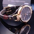 Европейское качество. Элегантный гладкий корпус из нержавеющей стали круглой формы, диаметр – 32 мм, толщина – 9 мм. Ремешок из натуральной кожи на простой ремешковой застежке. Минеральное стекло устойчивое к возникновению царапин. Аналоговый кварцевый механизм с тремя стрелками. Точность хода не хуже -10 +15 сек./в месяц. Текстурированный циферблат включает маркеры часа, люминесцентные стрелки. Водонепроницаемость до 5АТМ.