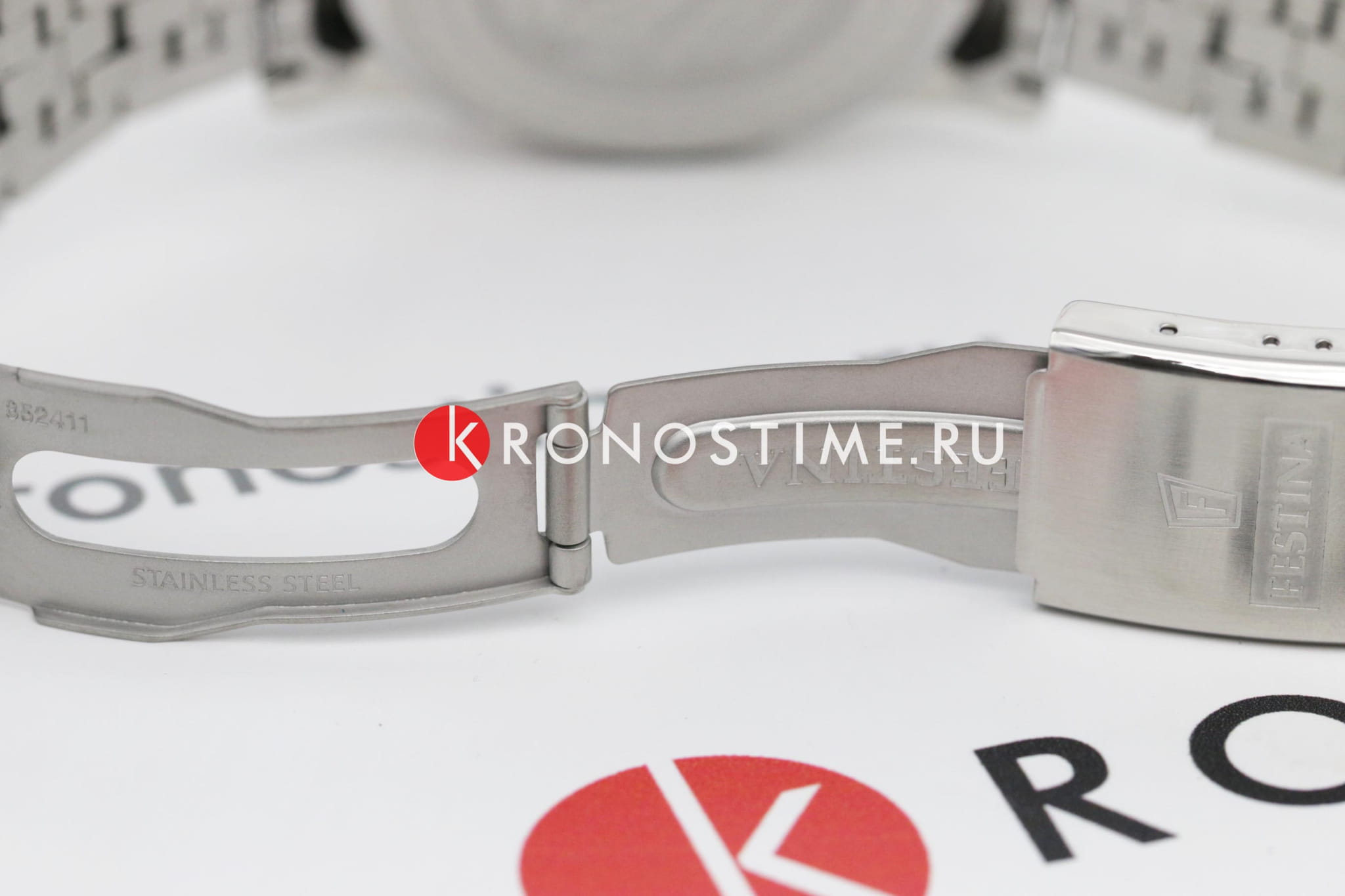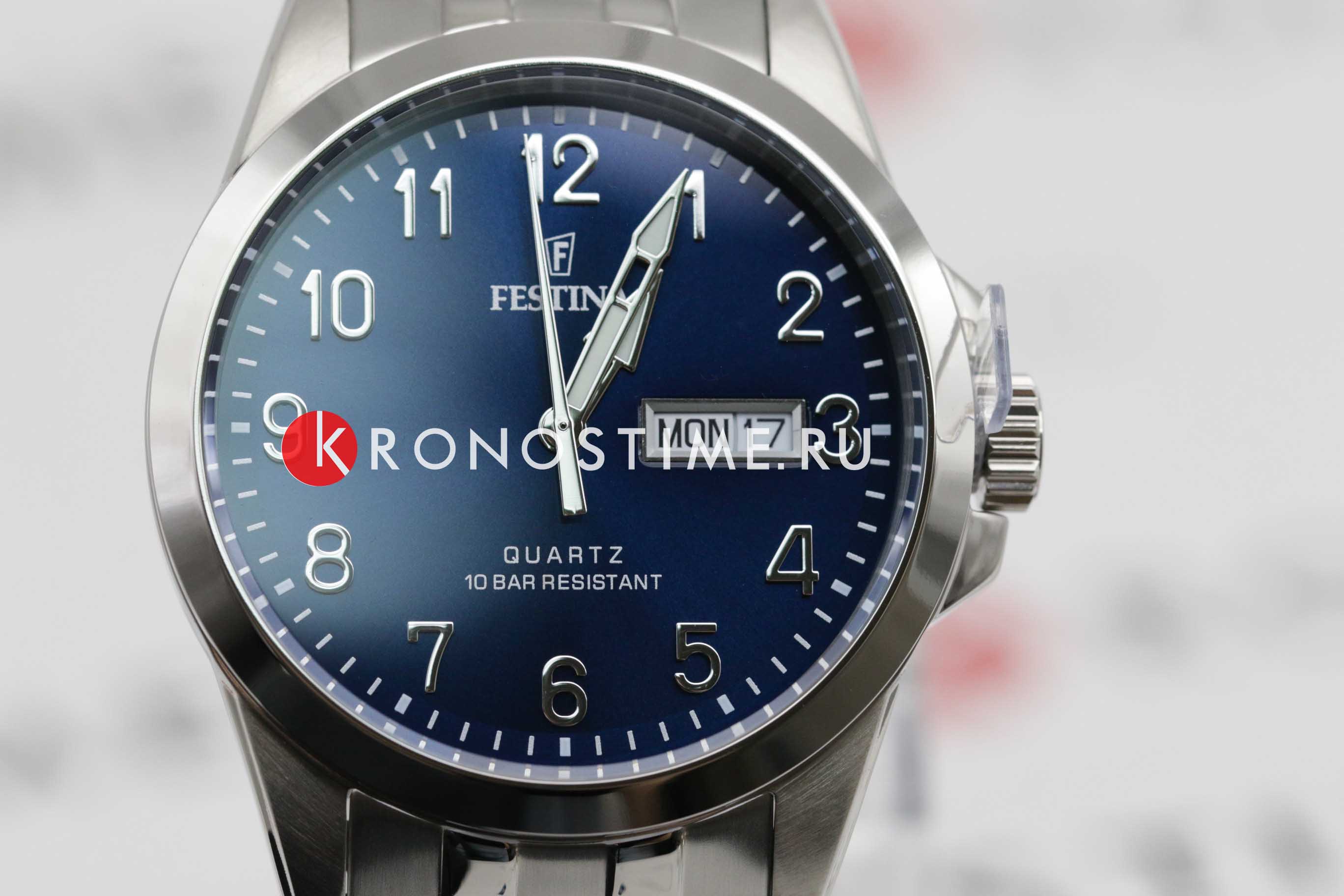 Наручные мужские часы с минеральным стекломМинеральное стеклоМинеральное стекло представляет собой искусственно выращенный минерал кварца. Такое стекло отличается особой устойчивостью к повреждениям и царапинам. Уступает по некоторым качествам сапфировому стеклу. Festina Clasico F20357/C, кварцевый механизм с высокой точностью. Класс водозащиты: 100 метров, позволит плавать, нырять и заниматься другими водными видами спорта. Корпус часов изготовлен из стали серебристого цвета. Браслет на раскладной застёжкеРаскладная застёжкаТакой тип застёжки используется только на браслетах из металла. Она никогда не раскрывается полностью, происходит разделение на 2 и более частей. Раскладывающая застёжка снизит вероятность потери часов к минимуму.. Циферблат выполнен по технологии Sunray (солнечные лучи). Серебристые стрелки и метки. Окошко даты находится в положении 3 часа.