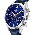 Эксклюзивный хронографХронографФункция позволяет измерять отрезки времени с особой точностью: часы, минуты, секунды. Верным признаком хронографа является наличие на циферблате 3 дополнительных окошек-счётчиков. с секундомеромСекундомерСекундоме́р — прибор, способный измерять интервалы времени с точностью до долей секунды., отличающийся продуманным дизайном и отделкой, придется по вкусу мужчинам, ценящим идеальное соотношение цены и качества. Минеральное стеклоМинеральное стеклоМинеральное стекло представляет собой искусственно выращенный минерал кварца. Такое стекло отличается особой устойчивостью к повреждениям и царапинам. Уступает по некоторым качествам сапфировому стеклу. устойчивое к появлению царапин, обладающее высокой прозрачностью. Циферблат с люминесцентным покрытиемЛюминесцентное покрытиеПозволяет считывать показания времени в темноте. Производители наносят на стрелки, часовые индексы, безель или поверхность циферблата светонакопительный состав, дающий холодное свечение. стрелок. Класс водозащиты: 50 метров, позволит защитить корпус от случайных брызг или капель дождя.