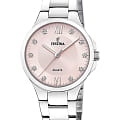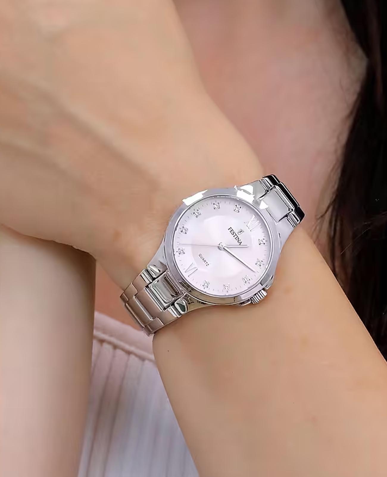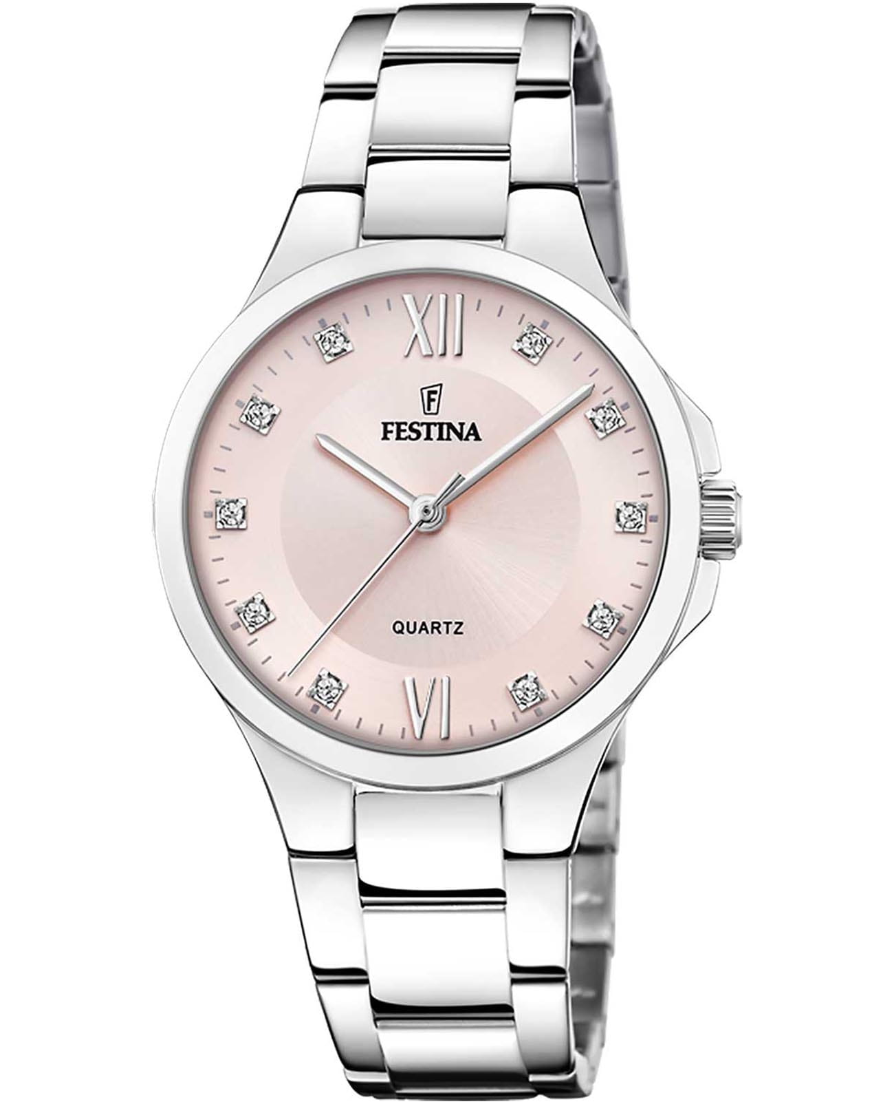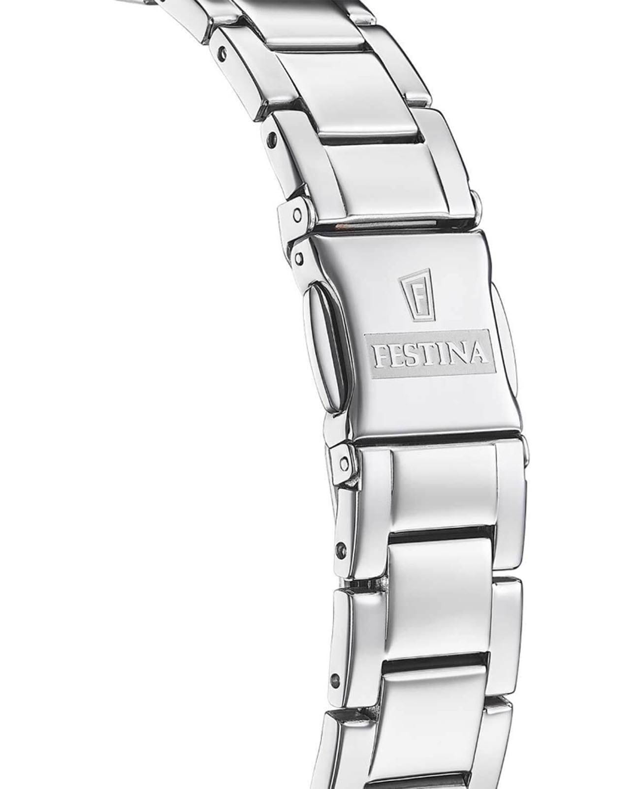 Женские наручные часы Festina Mademoiselle F20582/2. Кварцевый механизм с высокой точностью. Минеральное стеклоМинеральное стеклоМинеральное стекло представляет собой искусственно выращенный минерал кварца. Такое стекло отличается особой устойчивостью к повреждениям и царапинам. Уступает по некоторым качествам сапфировому стеклу. устойчивое к появлению царапин, обладающее высокой прозрачностью. Циферблат украшен цирконами. Класс водозащиты: 50 метров, позволит защитить часы от капель дождя. Корпус часов изготовлен из нержавеющей стали 316L. Браслет с раскладной застёжкойРаскладная застёжкаТакой тип застёжки используется только на браслетах из металла. Она никогда не раскрывается полностью, происходит разделение на 2 и более частей. Раскладывающая застёжка снизит вероятность потери часов к минимуму..