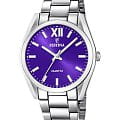 Наручные женские часы Festina Alegria F20622/6, кварцевый механизм с высокой точностью. Минеральное стеклоМинеральное стеклоМинеральное стекло представляет собой искусственно выращенный минерал кварца. Такое стекло отличается особой устойчивостью к повреждениям и царапинам. Уступает по некоторым качествам сапфировому стеклу. устойчивое к потертостям. Класс водозащиты: 50 метров, позволит защитить корпус от случайных брызг или капель дождя. Стрелки и метки с люминесцентным покрытиемЛюминесцентное покрытиеПозволяет считывать показания времени в темноте. Производители наносят на стрелки, часовые индексы, безель или поверхность циферблата светонакопительный состав, дающий холодное свечение.. Корпус и браслет часов изготовлены из стали, серебристого цвета. Браслет на раскладной застёжкеРаскладная застёжкаТакой тип застёжки используется только на браслетах из металла. Она никогда не раскрывается полностью, происходит разделение на 2 и более частей. Раскладывающая застёжка снизит вероятность потери часов к минимуму..