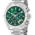 Эксклюзивный хронографХронографФункция позволяет измерять отрезки времени с особой точностью: часы, минуты, секунды. Верным признаком хронографа является наличие на циферблате 3 дополнительных окошек-счётчиков. с секундомеромСекундомерСекундоме́р — прибор, способный измерять интервалы времени с точностью до долей секунды., отличающийся продуманным дизайном и отделкой, придется по вкусу мужчинам, ценящим идеальное соотношение цены и качества.. Минеральное стеклоМинеральное стеклоМинеральное стекло представляет собой искусственно выращенный минерал кварца. Такое стекло отличается особой устойчивостью к повреждениям и царапинам. Уступает по некоторым качествам сапфировому стеклу. устойчивое к появлению царапин, обладающее высокой прозрачностью. Класс водозащиты: 100 метров, позволит защитить корпус от случайных брызг или капель дождя. Метки в виде штрихов. Стрелки и метки с нанесенным люминесцентным покрытиемЛюминесцентное покрытиеПозволяет считывать показания времени в темноте. Производители наносят на стрелки, часовые индексы, безель или поверхность циферблата светонакопительный состав, дающий холодное свечение.