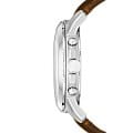 Контрастный кремовый циферблат с накладными часовыми метками и окантовкой счетчиков хронографа.