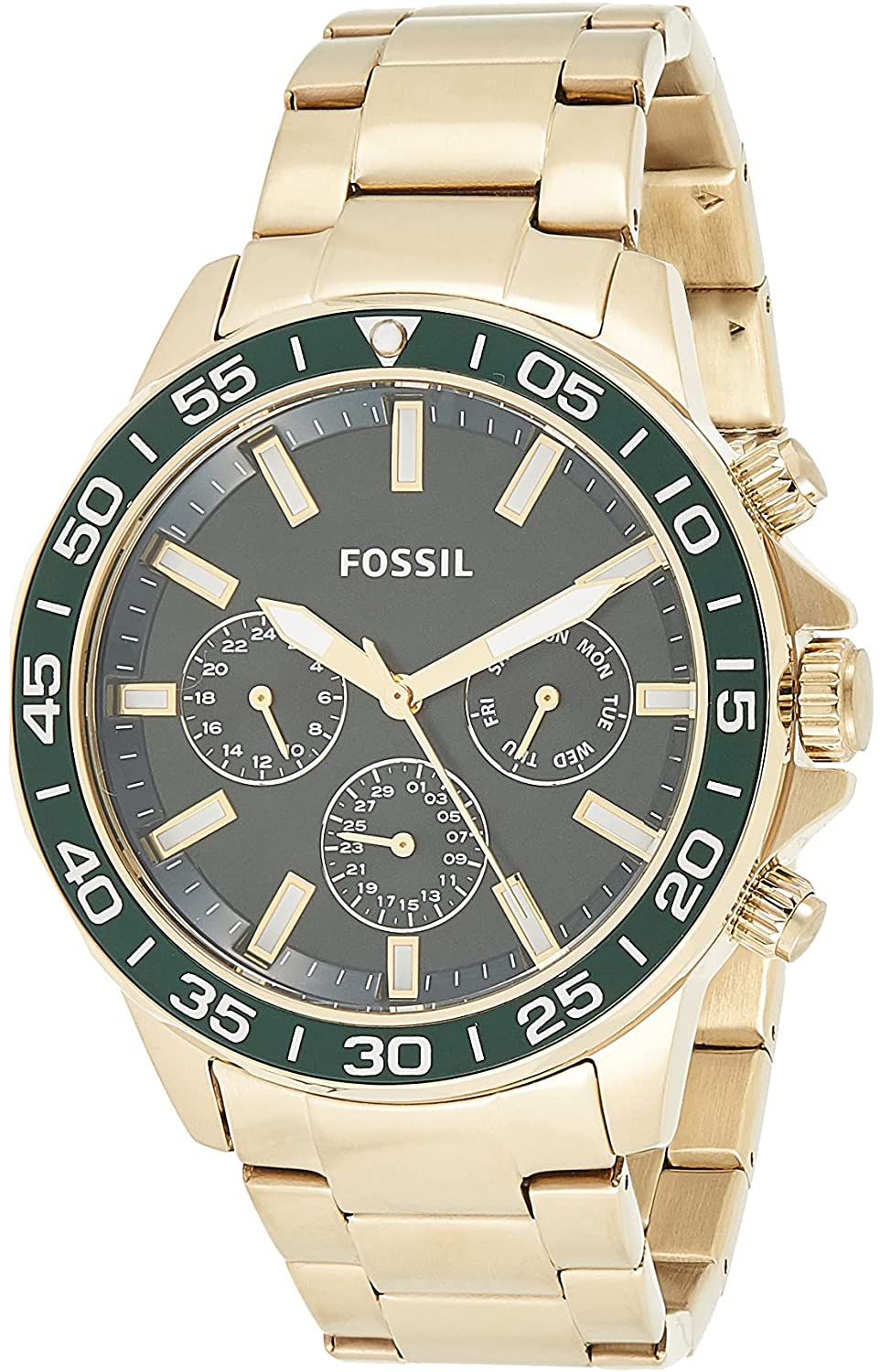 Мужские американские часы Fossil Bannon BQ2493, кварцевый механизм с высокой точностью. Класс водозащиты: 50 метров, позволит защитить корпус от случайных брызг или капель дождя. Корпус часов изготовлен из стали, золотистого цвета.