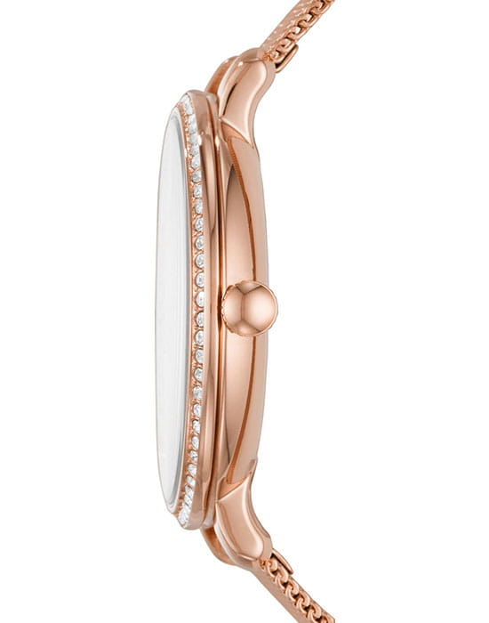 Женские наручные часы с кристаллами Fossil FB-01 ES4628, кварцевый механизм с высокой точностью. Класс водозащиты: 30 метров, позволит защитить корпус от случайных брызг или капель дождя. Корпус часов изготовлен из стали, цвета.
