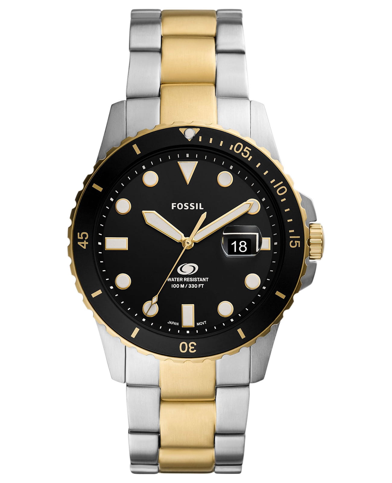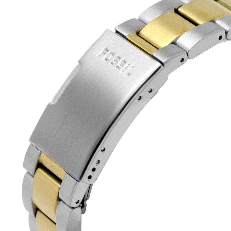 Мужские наручные часы на стальном браслете Fossil Blue FS5951, кварцевый механизм с высокой точностью. Класс водозащиты: 100 метров, позволит плавать, нырять и заниматься другими водными видами спорта. Корпус часов изготовлен из стали с IP-покрытиемIP-покрытиеМетод ионного напыления. Демонстрирует повышенную устойчивость к истиранию, окислению и химическим веществам. Под воздействием высокого давления и температуры около 1500°C молекулы металла надёжно соединяются с частицами корпуса часов. черного цвета. Метки в виде точек на циферблате и окошко даты находится в положении 3 часа. Ремешок из стали с частичным IP-покрытиемIP-покрытиеМетод ионного напыления. Демонстрирует повышенную устойчивость к истиранию, окислению и химическим веществам. Под воздействием высокого давления и температуры около 1500°C молекулы металла надёжно соединяются с частицами корпуса часов. золотого цвета на раскладывающейся застёжкеРаскладная застёжкаТакой тип застёжки используется только на браслетах из металла. Она никогда не раскрывается полностью, происходит разделение на 2 и более частей. Раскладывающая застёжка снизит вероятность потери часов к минимуму..