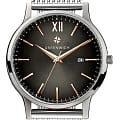 Мужские английские часы Greenwich GW 061.19.14 с минеральным стекломМинеральное стеклоМинеральное стекло представляет собой искусственно выращенный минерал кварца. Такое стекло отличается особой устойчивостью к повреждениям и царапинам. Уступает по некоторым качествам сапфировому стеклу.. Классические мужские часы серии Brig прекрасно подойдут как под костюм, так и под одежду направления casual. В часах установлен точный японский механизм Miyota. Корпус часов изготовлен из нержавеющей гипоаллергенной стали: он изящно смотрится на руке и не создает неудобств при контакте с одеждой с длинным рукавом. Размер корпуса 41 мм. Полировка на циферблате черного цвета выполнена в виде солнечных лучей. Индексы часов изготовлены вручную и закреплены на двух штифтах. Выпуклая форма рисок создает эффект игры солнечных бликов. Объемные часовая и минутная стрелки имеют мечеобразную форму. В модели представлена дополнительная функция – дата. Ее окошко расположено на уровне трех часов. Циферблат надежно защищен минеральным стеклом. Часы установлены на стальной браслет миланского плетения. Логотип марки – изображение «розы ветров», символа удачи и новых открытий – расположен на циферблате, заводной головке и внутренней части ремешка. Задняя крышка часов украшена изображениями логотипа и корабля, который является символом марки Greenwich.