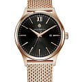 Мужские английские часы Greenwich GW 061.49.11 с минеральным стекломМинеральное стеклоМинеральное стекло представляет собой искусственно выращенный минерал кварца. Такое стекло отличается особой устойчивостью к повреждениям и царапинам. Уступает по некоторым качествам сапфировому стеклу.. Классические мужские часы серии Brig прекрасно подойдут как под костюм, так и под одежду направления casual. В часах установлен точный японский механизм Miyota. Корпус часов изготовлен из нержавеющей гипоаллергенной стали с PVDPVDУльтратонкое покрытие наносится в технике вакуумного напыления, сочетает в себе нитрид титана особой прочности со слоем золота или оксида хрома. Несёт в себе декоративную или защитную функцию. покрытием из розового золота: он изящно смотрится на руке и не создает неудобств при контакте с одеждой с длинным рукавом. Размер корпуса 41 мм. Полировка на циферблате черного цвета выполнена в виде солнечных лучей. Индексы часов изготовлены вручную и закреплены на двух штифтах. Выпуклая форма рисок создает эффект игры солнечных бликов. Объемные часовая и минутная стрелки имеют мечеобразную форму. В модели представлена дополнительная функция – дата. Ее окошко расположено на уровне трех часов. Циферблат надежно защищен минеральным стеклом. На часах установлен стальной браслет миланского плетения. Логотип марки – изображение «розы ветров», символа удачи и новых открытий – расположен на циферблате, заводной головке и внутренней части ремешка. Задняя крышка часов украшена изображениями логотипа и корабля, который является символом марки Greenwich.