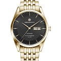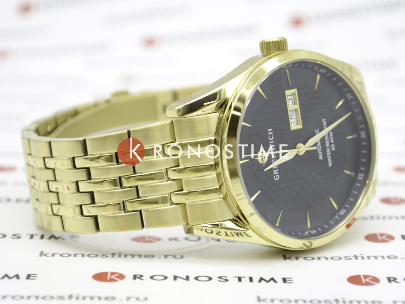 Мужские часы с минеральным стекломМинеральное стеклоМинеральное стекло представляет собой искусственно выращенный минерал кварца. Такое стекло отличается особой устойчивостью к повреждениям и царапинам. Уступает по некоторым качествам сапфировому стеклу. Greenwich Good Luck Classic GW 074.20.31, представляют собой классический вариант для повседневной носки. В центральной части циферблата — отличительная черта моделей этой серии: гильоше, объемные линии которого напоминают волны. Обратите внимание на форму пластины, где крепятся накладные риски: она сделана в форме латинской буквы G, первой буквы в названии бренда. Часы характеризуются традиционными формами, лаконичным исполнением, что делает модель элегантным дополнением к деловому костюму. Сквозь прозрачную заднюю крышку вы увидите детали механизма TMI с декорированным ротором: на нем выгравировано изображение символа английских моряков — парусника. Корпус и браслет часов выполнены из гипоаллергенной нержавеющей стали с PVD-покрытиемPVDУльтратонкое покрытие наносится в технике вакуумного напыления, сочетает в себе нитрид титана особой прочности со слоем золота или оксида хрома. Несёт в себе декоративную или защитную функцию.. Браслет на раскладной застёжкеРаскладная застёжкаТакой тип застёжки используется только на браслетах из металла. Она никогда не раскрывается полностью, происходит разделение на 2 и более частей. Раскладывающая застёжка снизит вероятность потери часов к минимуму.. Дизайн, актуальный для любого современного образа, и надежность используемых материалов делают автоматические часы Greenwich удобным и стильным аксессуаром на каждый день. Окошко даты и дня недели находится в положении 3 часа. Класс водозащиты: 100 метров, позволит плавать, нырять и заниматься другими водными видами спорта.